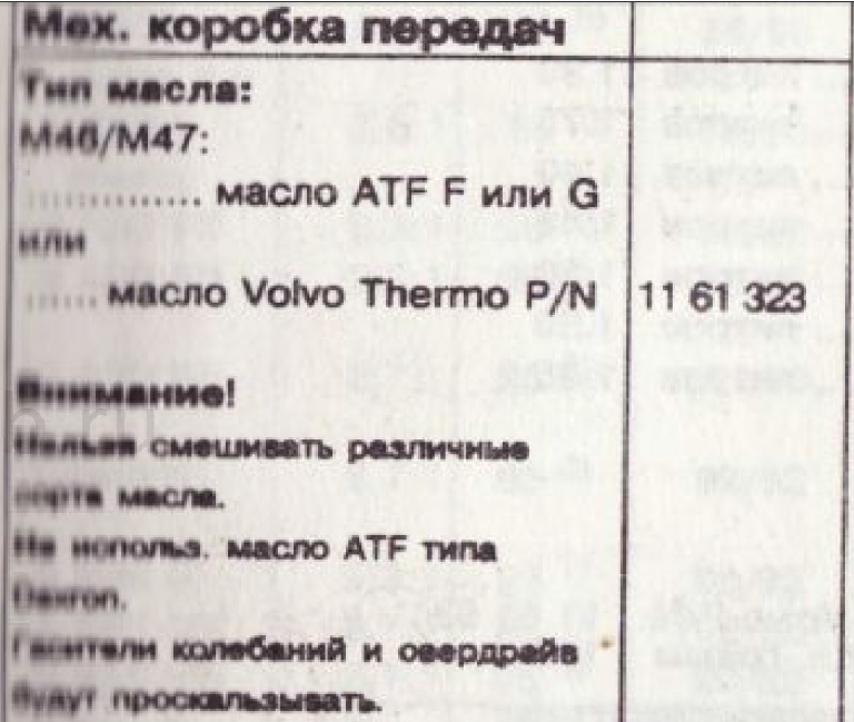 Всё верно,только Гуру пофиг на усиление-ослабление фрикционных свойств АТФ разных типов(это не повод лить не рекомендуемое заводом :D )в отличии от коробок.Если делается полная замена,то можно переходить на масла новых типов-рекомендация того же вольво,поскольку тип Ф считается устаревшим и снят с производства большинством производителей масла.Многие более 10 лет ездят на АТФ 220(вместо 210) в коробе М46(со сменами естественно),и проблем не замечено.