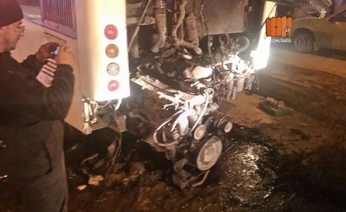 Только в России: В Ростове-на-Дону 2 марта в районе 18:30 у пассажирского автобуса РоАЗ на ходу вывалился, а потом загорелся двигатель. Инцидент произошел недалеко от остановки «Горького».