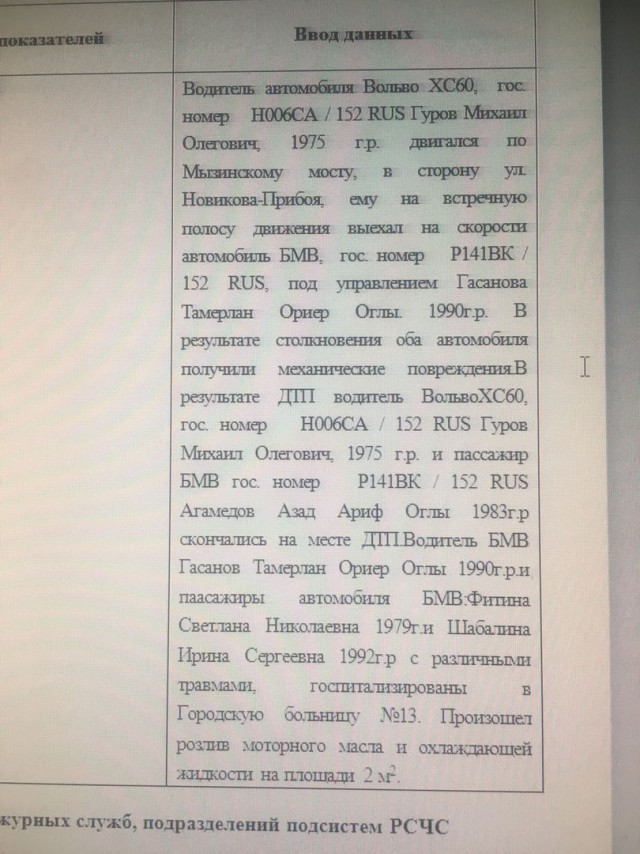 "Проезжали мимо как раз сразу после столкновения, остановились, думали может чем помочь... В Вольво был один водитель, его достали, был в сознании, даже телефон родственников сказал. В БМВ пассажир на переднем был сразу мертв, водитель жив был, но оооооочень сильно переломан и зажат, достать его медики не разрешили, ждали МЧС. Сзади две девушки, одну увезли в больницу, вторую зажало. В БМВ ни одна подушка не сработало, а в Вольво со всех сторон выстрелили. Жутко..."