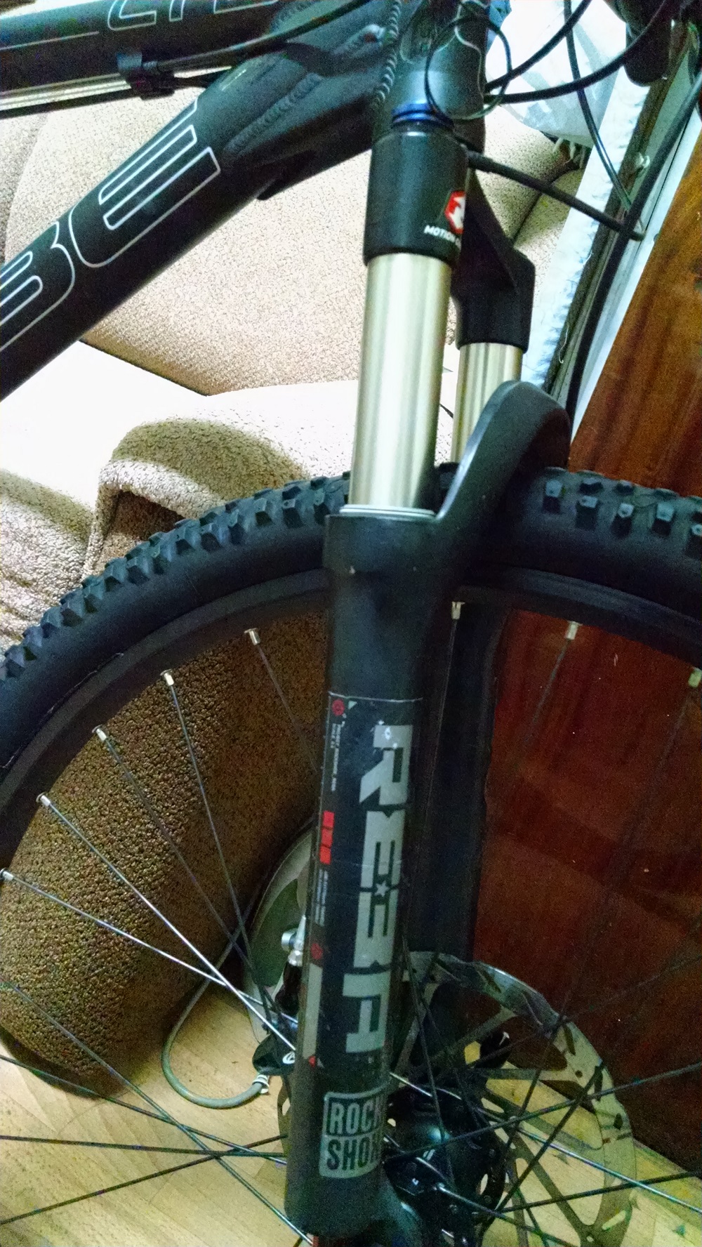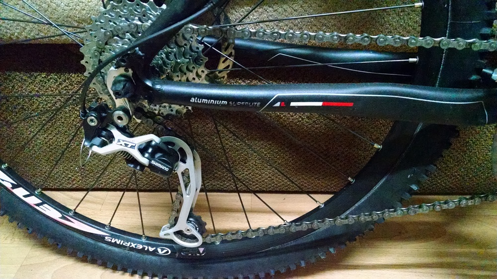 Из хорошего, рама алюминий 7005(прочнее и чуть легче 6061), вилка еще двухкамерная Реба с локаутом на руле(сейчас только однокамерные), которая позволяет сделать мегаплюш, ХТ-шные втулки и переклюки, Авидовская (эликиры-7)гидравлика с передним 180 ротором( нафиг там 180 сам не пойму), пистонированные обода, да вроде из главного и все.