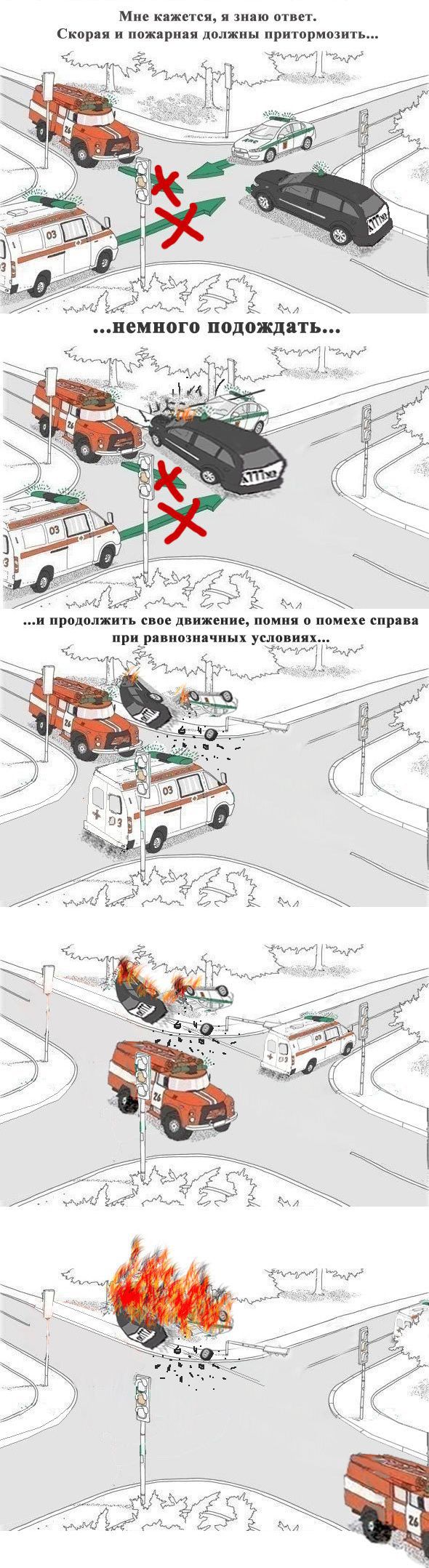 Я ехал на машине и заметил вспышку видеокамеры. Я сообразил, что меня сфотографировали на предмет превышения скорости, хотя и знал, что скорость не превышал. Просто, чтобы убедиться в своём предположении я объехал квартал, проехал вновь по тому же месту, причём на ещё более низкой скорости. Но камера снова вспыхнула. Мне это показалось забавным, и я проехал мимо камеры ещё три раза с черепашьей скоростью, улыбаясь в камеру, которая щёлкала каждый раз когда я проезжал мимо. Через две недели я получил по почте пять квитанций за вождение с не пристёгнутым ремнём безопасности... "