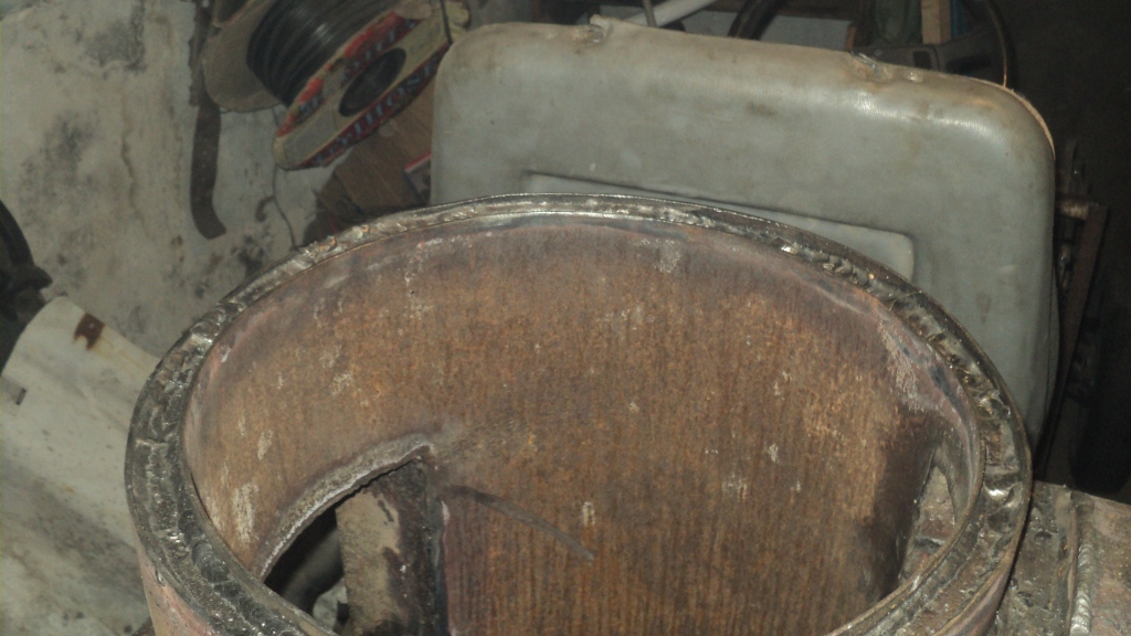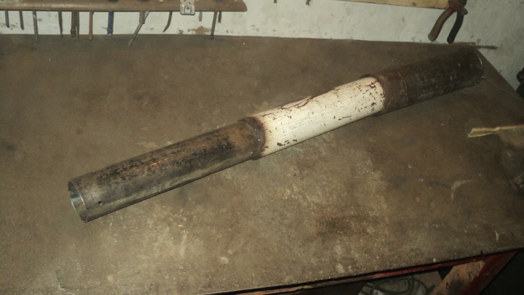 Крышку рекуператора (подогрев входящего воздуха) прихватил на несколько точек и промазал герметиком с возможностью вскрыть в дальнейшем, потому как не очень понравился телескоп, трубы стальной 110 мм найти не удалось, а последнюю трубу меньше 60 мм не хотелось бы, потому пришлось брать 91 мм - 76 мм - и 68мм делалась самостоятельно, урезалась два раза и сваривалась ввиду чего получилась не совсем круглая, отсюда и заедания телескопа.