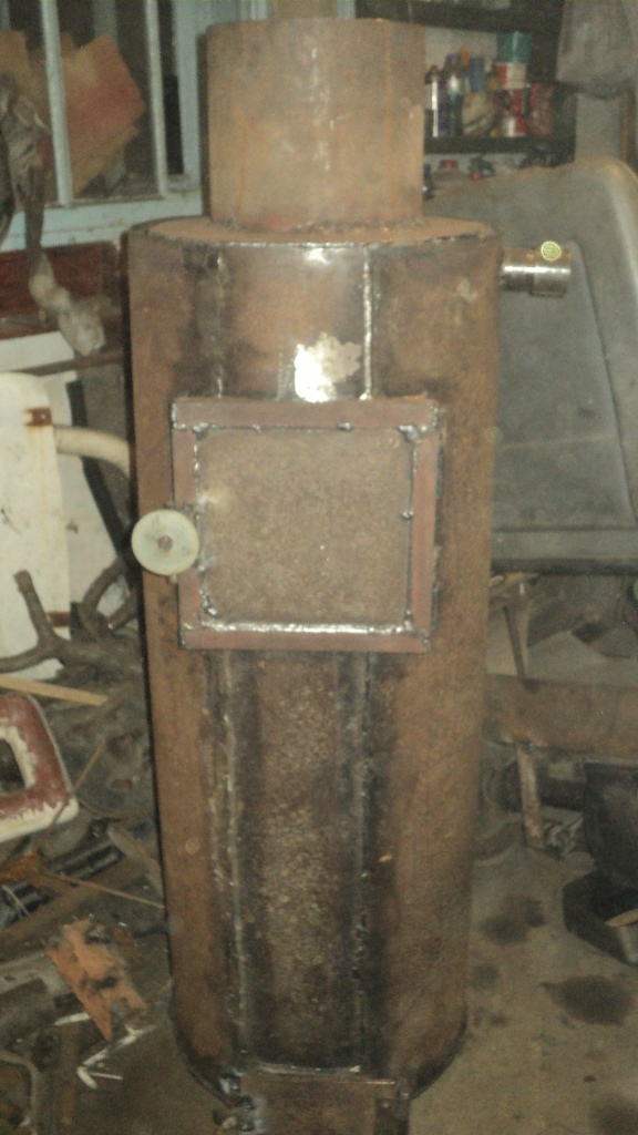 Изначально в прошлом году была сделана буржуйка в мастерскую из 50 литрового потекшего бойлера, которая при хороших и сухих дровах горела непрерывно до 6 часов при этом стояла жара в небольшой мастерской.