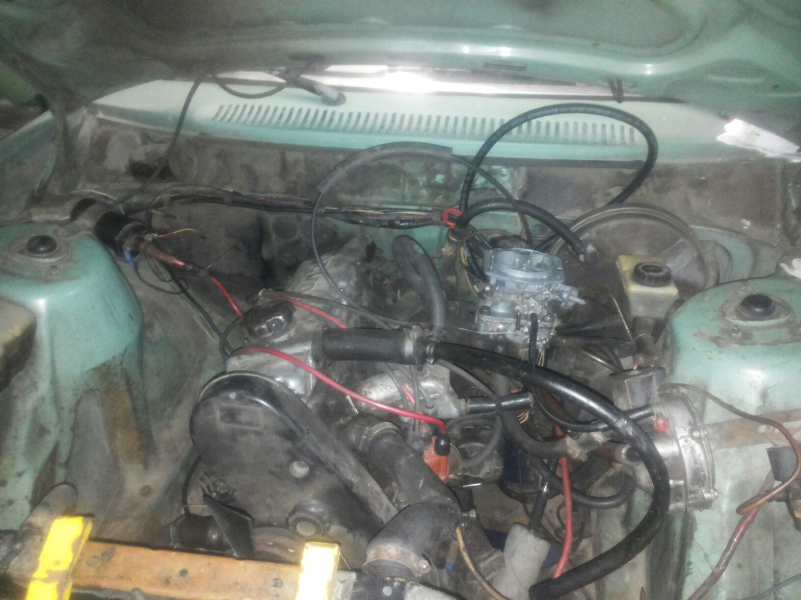 И так в машине при покупке стоит мотор, так называемый "Redblock", верхневальный, В21А обьемом 2,1литра и на карбе, карб от таза "Озон", мотор, по словам прежнего владельца, ставил сам, т.к. покупал машину без мотора, а родной из того, что мне удалось пробить по вин и вик коду -это был В19А, тоже самое впринципе, обьемом только — 1,9литра. В мечтах установка легендарного турбомотора B230FT и остальных его турбо2,3 версий, тот же простой, четырехцилиндровый одновальный "редблок" который уже заслужил немалое уважение у скандинавов, очень надежный и крепкий, того дуют в них нереально и снимают нормально мощности. Опять же причины выбора этого мотора, а не что-то свежее: его надежность, простота, болт-он установка, и это маленькая четверка не нарушающая философию развесовки двухсотки. Так же большие планы на этот мотор в этом кузове, сделать мощный слипер со стоковой внешностью, на большой турбине и желательно реализовать антилаг… Короче, это только мечты! Потому, что нужно зиму откатать на том, что есть, а весной, когда могу уже сесть на мот, начинать поиск мотора и постройку…