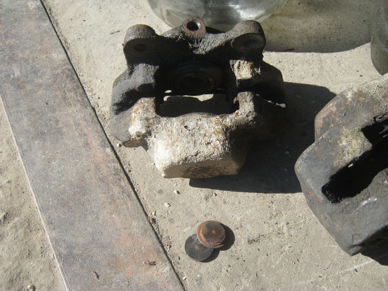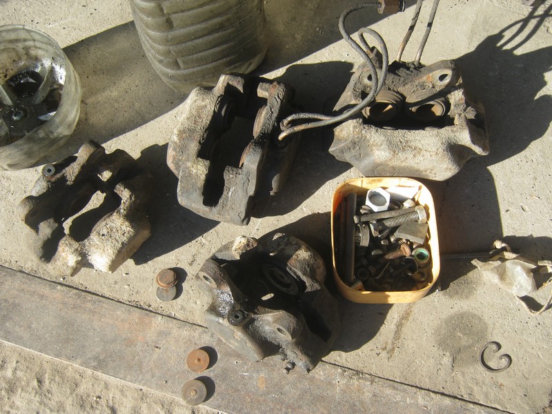 НА суппортах пыльники еще оригинальные, на всех написано Гирлинг. И даже вполне целые, но все равно буду все менять. Даже с одной стороны на передке колодки были Вольво.