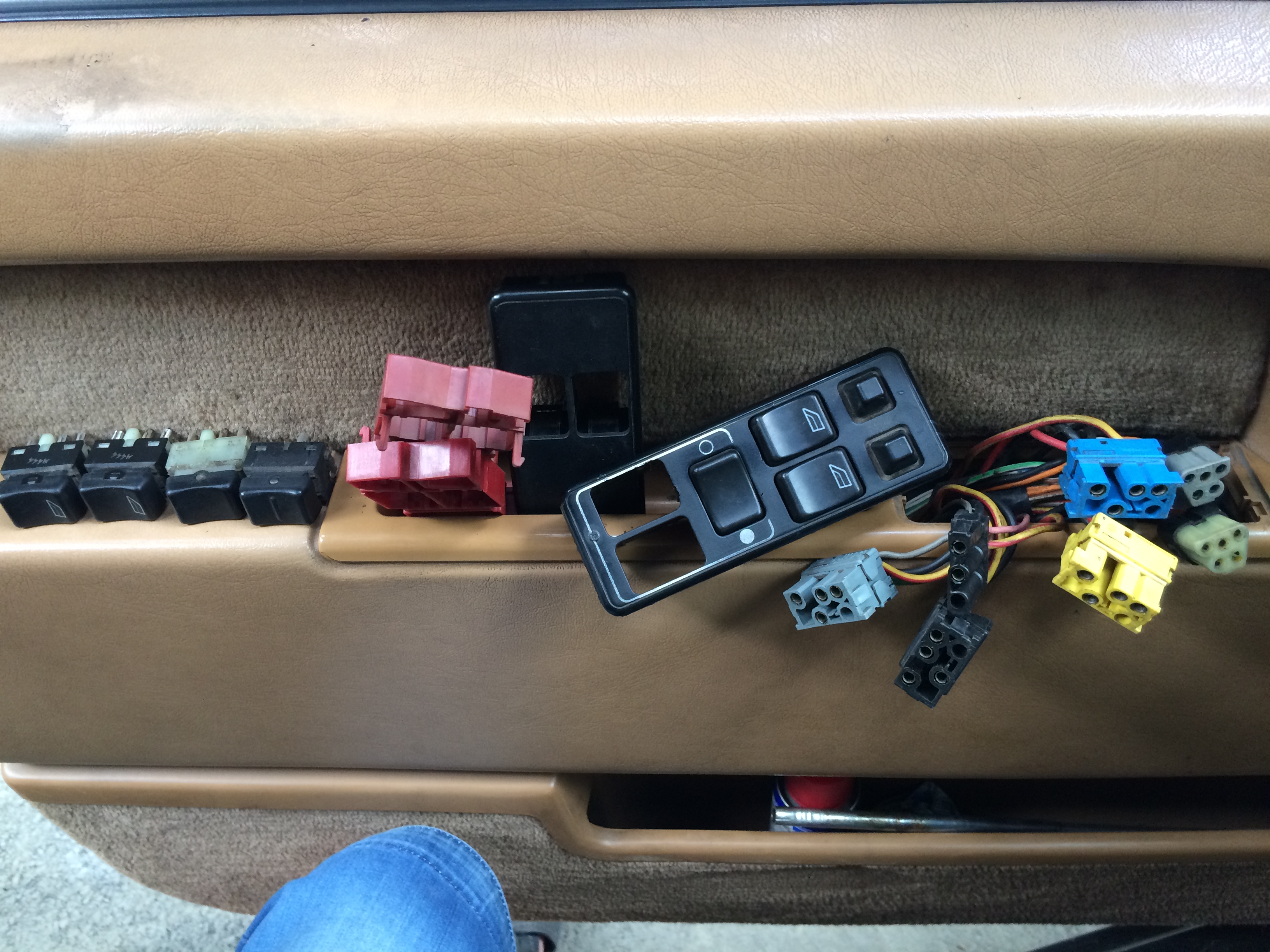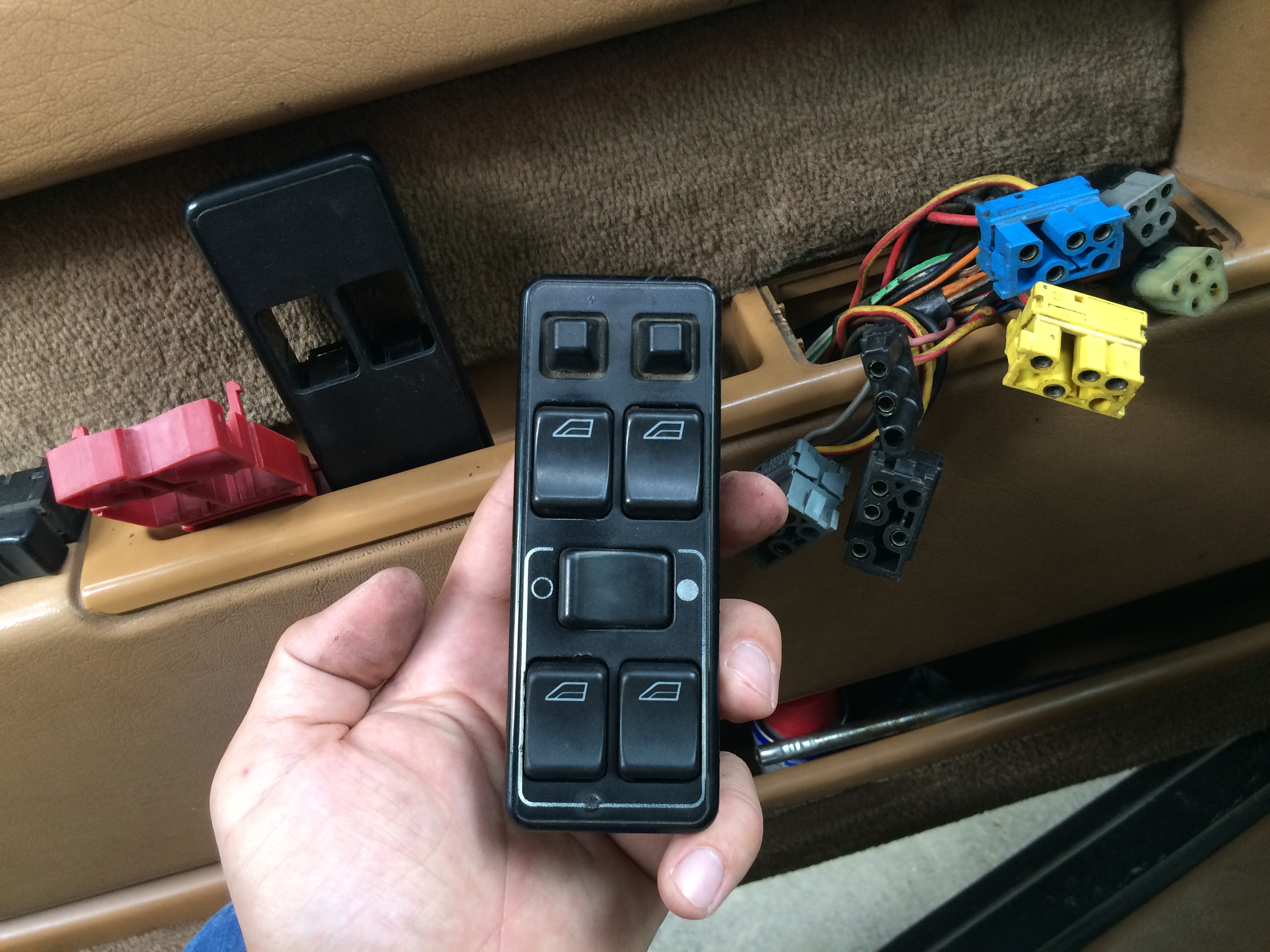 На кнопках задних окон, специальные тактильные полосочки, что бы не спутать с передними.