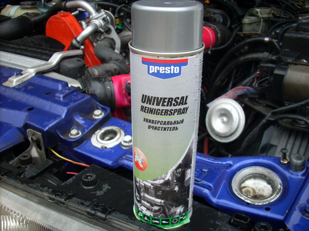 решил попробовать дома, поехал в магазин и нашол вот такое средство, оно реально отьедает всю грязь и масло, побрызгав с балона, спец. насадка дает хороший напор, оно все отьело и потом сбрызгал легонько с садового пистолета!