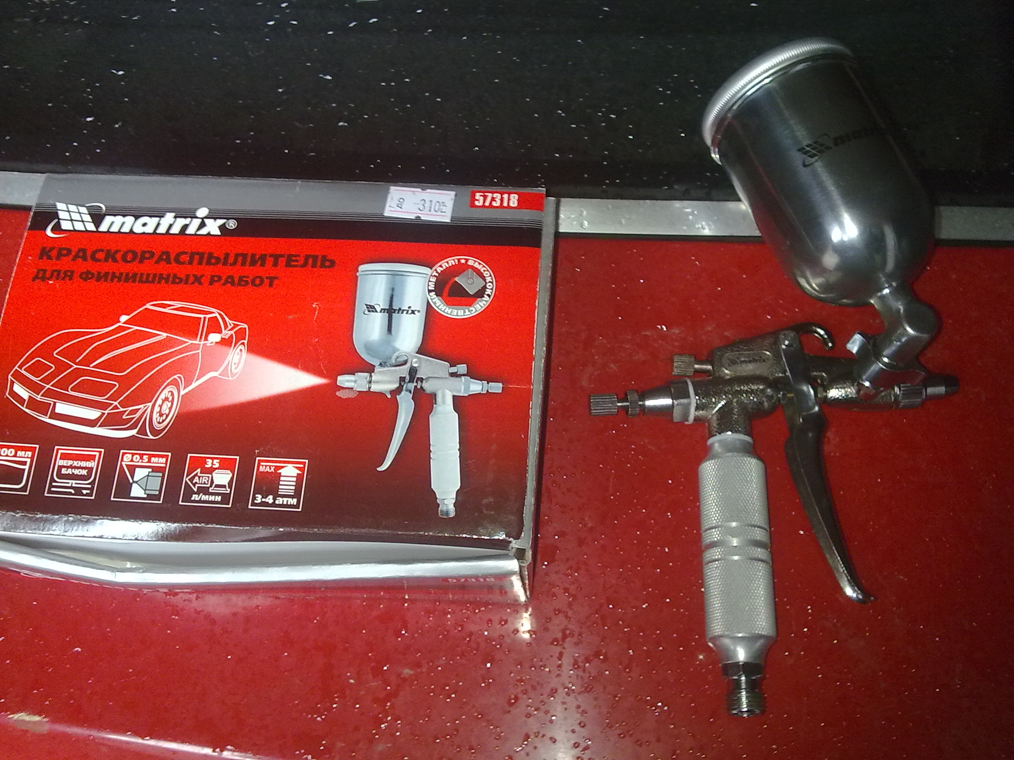 Час від часу дозволяю купити собі якийсь новий інструмент. Тому, після покупки компресора (вже досить давно) почав обростати пневматичними аксесуарами -- шланги, продувка, пістолет для мовіля, підкачка шин і т.д. Коли дійшла черга до фарбувального пістолета, то зупинився на такому собі універсальному.