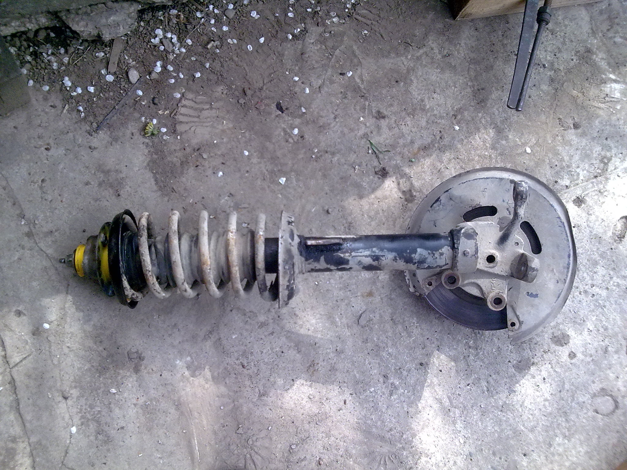 Ліва сторона -- нова (реставрована) шарова опора, опора стійки (поліуретанова), опорний підшипник. Стук ще ішов від самої стійки, тому розібрав і її. Наскільки я знаю -- в 340-вих в передніх стійках стоять вкладиші, в мене стійка є корпусом амортизатора. Чув про такі, прийдеться реставрувати.