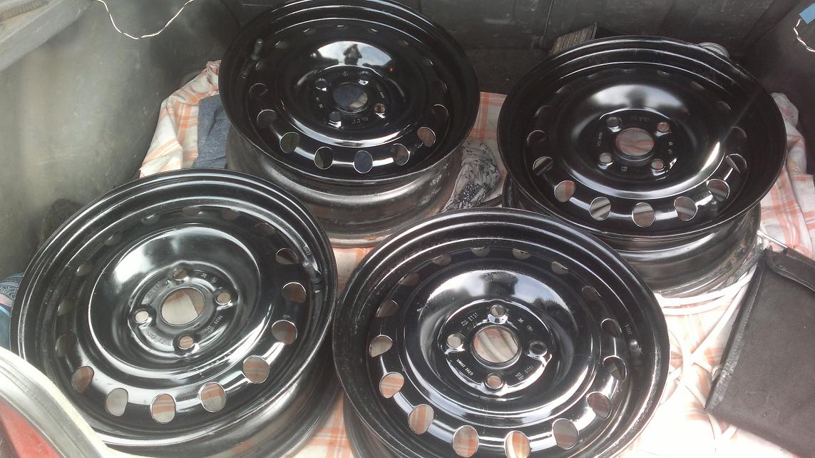 Вот наконец пришло время переобуться. Покрасил и привел в порядок зимой купленные диски, вставил все новые соски, два новых колеса поставил на перед а два езженых назад, купил колпаки, наклейки и пластиковые хомуты, сегодня все поставил и собрал в кучу, вот такой вот получился результат.