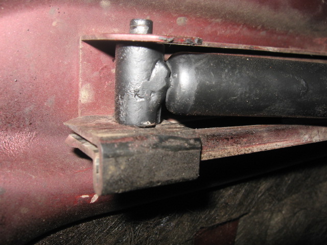 4) Приколхожена стойка капота от Мерса. Размеры - тютелька в тютельку, только верхнюю бобышку пришлось приварить. У Вольво она на резьбе. Усилие Мерсовской стойки 280 Н вместо 420 Н у родной. Но капот держит нормально.