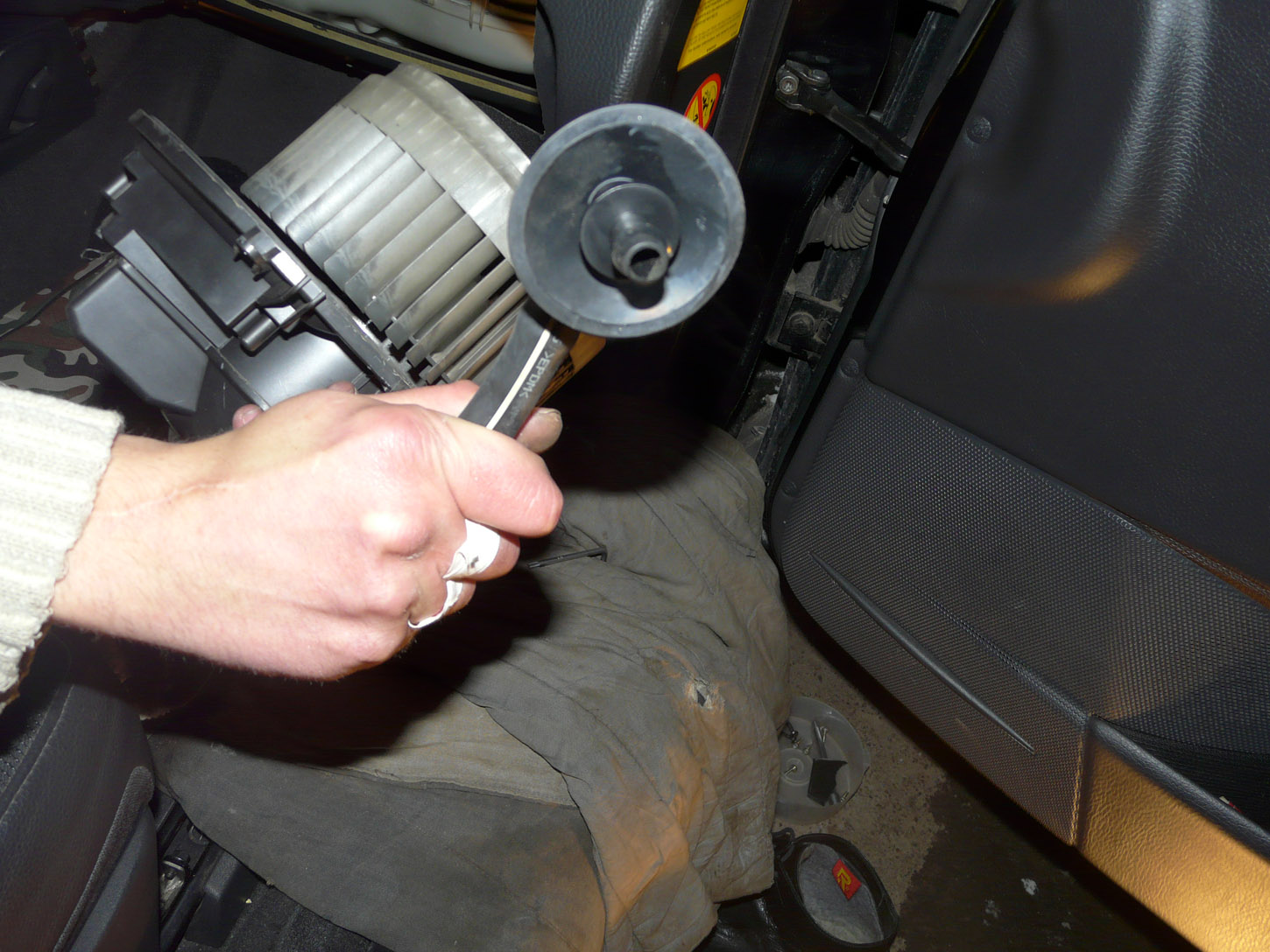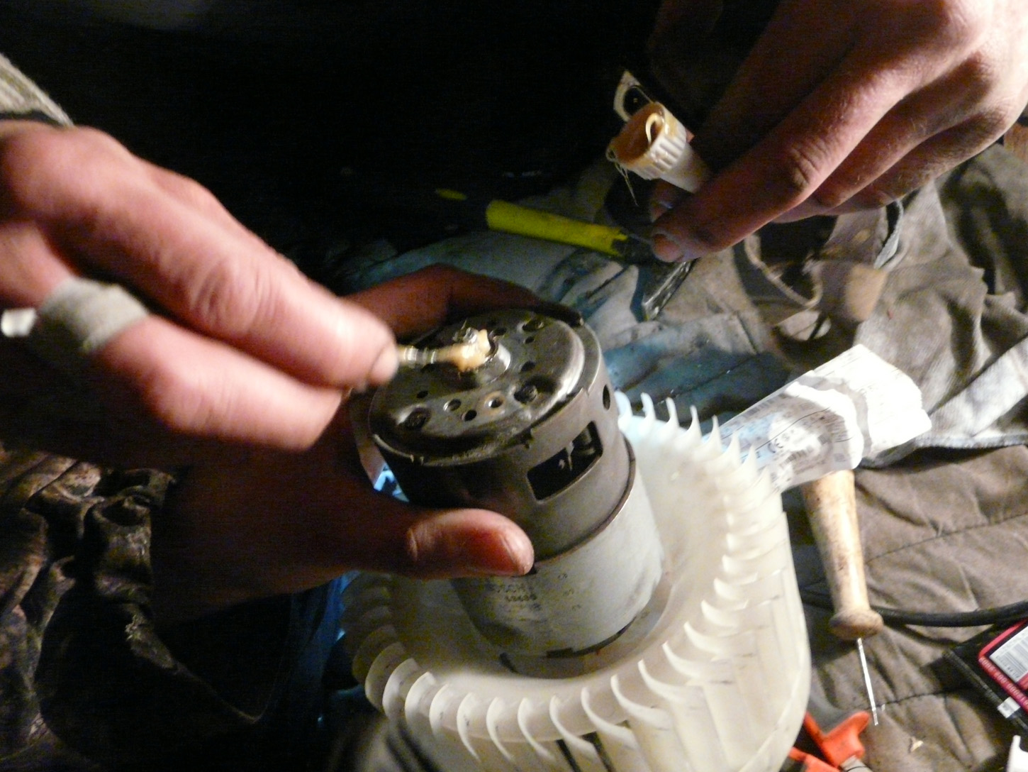 Дальше самое геморное!, откручиваем 5-ть шурупов крепления двигателя печки.(Кстати удалось выкрутить и закрутить обратно не сломав ни одной поушины - как описывают на форумах. ) и вот он! :idea:
