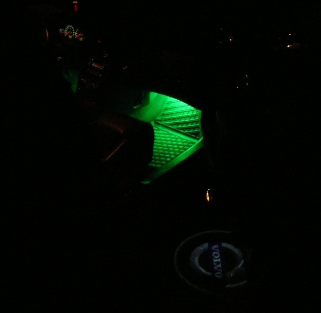 Подсветка с логотипом установлена!!!! + светодиодная лента(зелёная), теперь светит на передние коврики под ноги! Ну и диски ожидают шины! весна на носу. Буду брать такие же, как у бывшего хозяина Toyo extensa hp 205/50 R17.