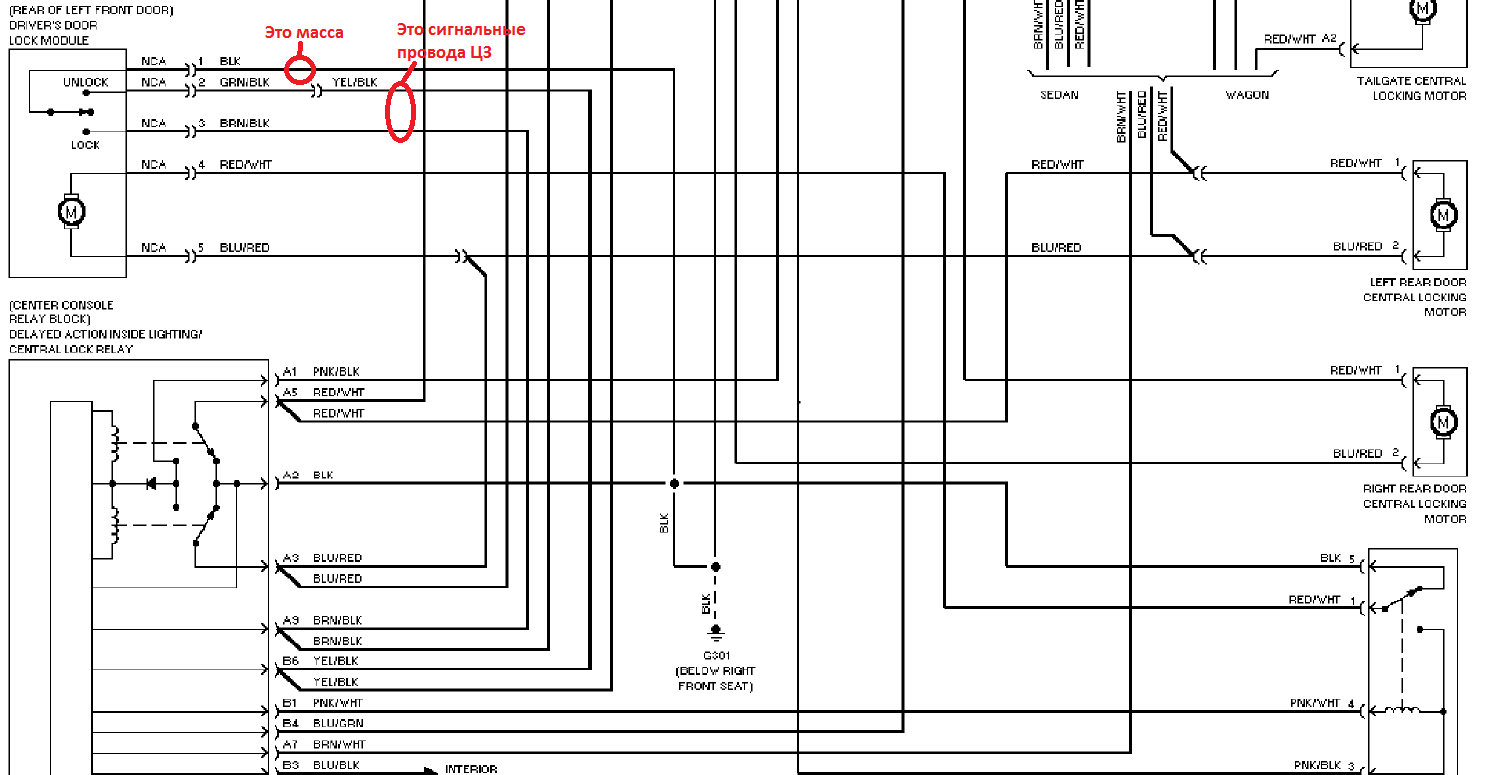 Второй вопрос касается подключения управления ЦЗ сигнализацией. Подключил на прямую к замкам (открытие красный/белый, закрытие красный/синий)- сигналка их не тянет. Слышно что пытается но не тянет. Я так понимаю нужно подключить к сигнальным проводам? Если да - то кто подскажет цвета на открытие желтый/черный и закрытие коричневый/черный?