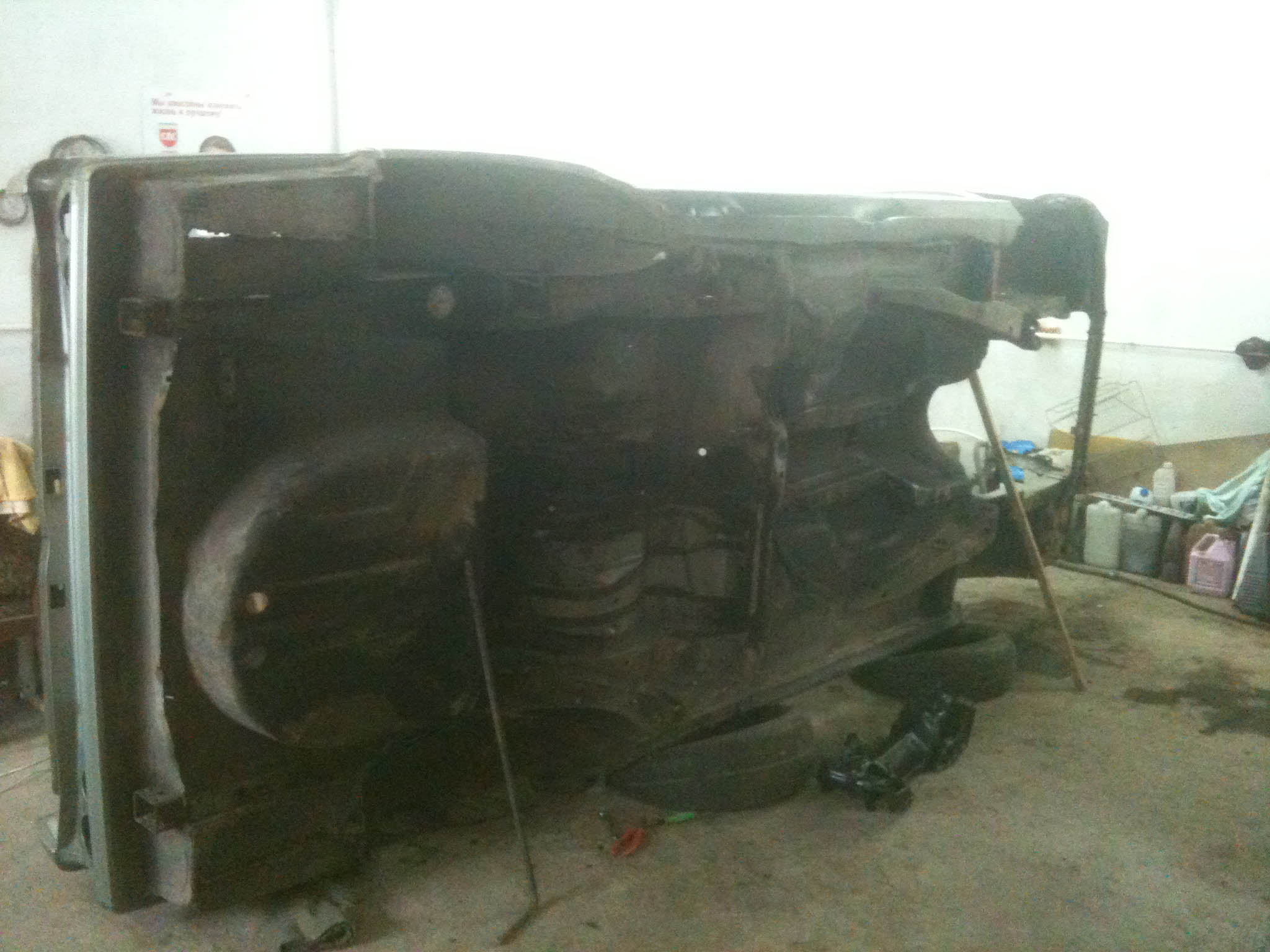 )сняли мотор и кузов стоял недели 2 наверное и потом понеслась... Сначала полнейшая разборка фото...