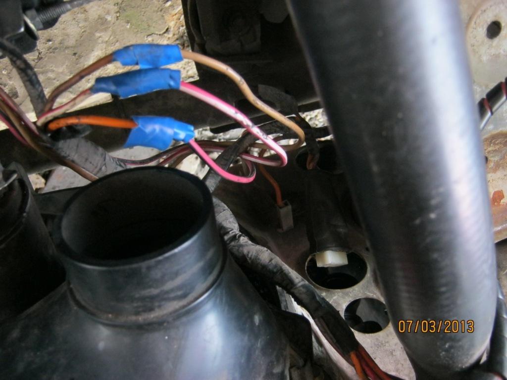 Вот эта штуковина.Из пучка проводов,идущих на фишку датчика включения вентилятора,идет оранжевый провод,после-скрутка еще с двумя такими же,после чего один идет на фишку датчика,а два на вот эту штуковину. Вот-так вот.