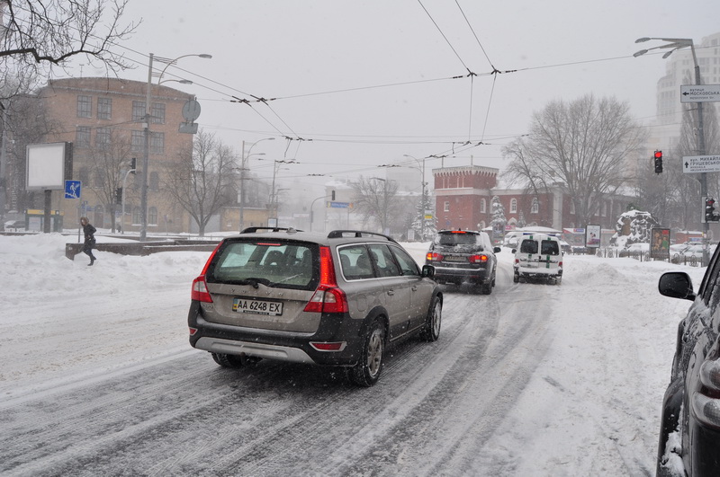 Сегодня поехал на работу (Львовская площадь). А транспорт не ходит вообще ни какой. Далее фото по маршруту 18 тролебаса от Майдана до Львовской часов в 10 утра...