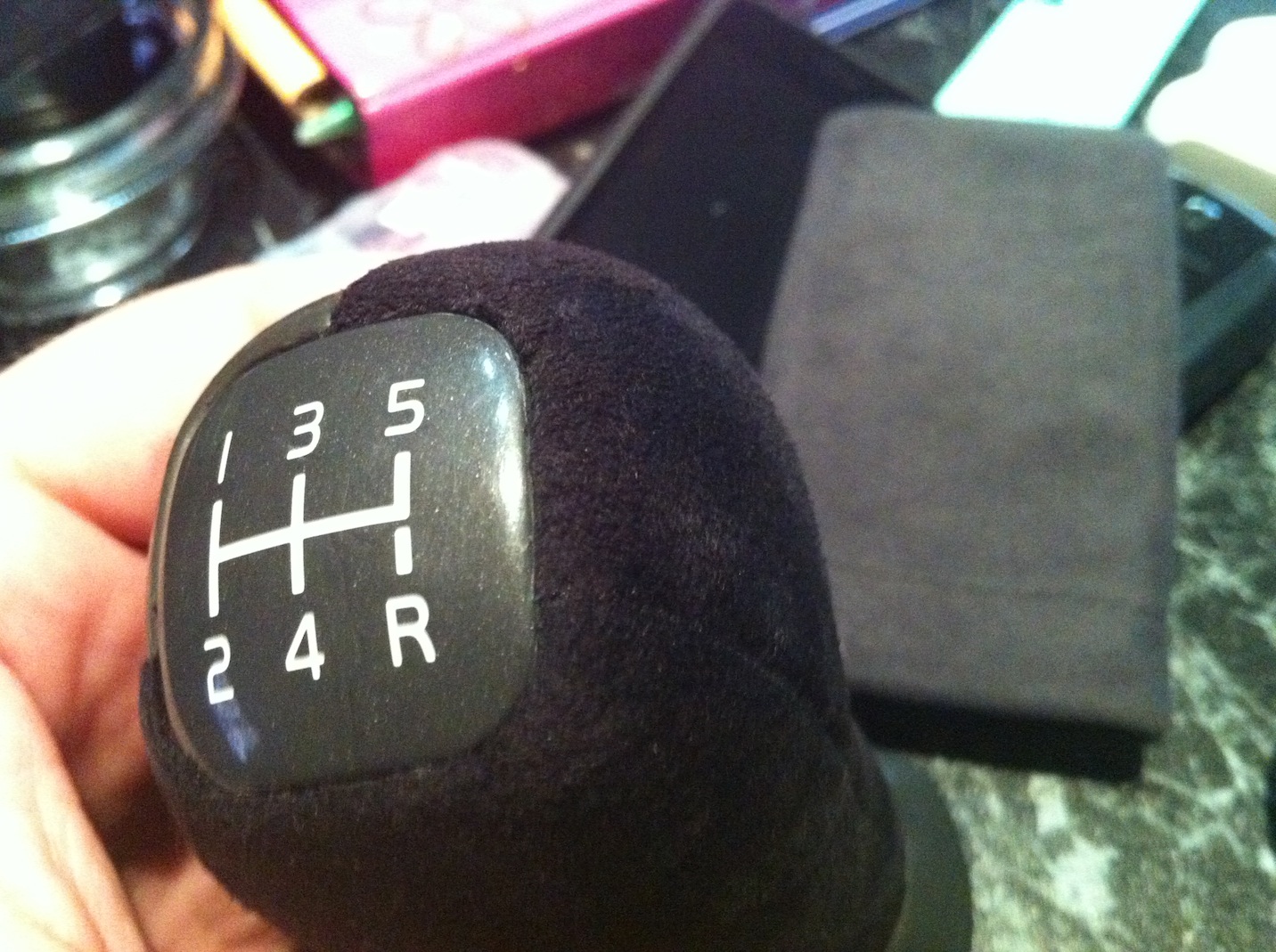 Взял сегодня свою запасную ручку КПП, решил поэксперементировать с внешним видом, обклеил искуственной алькантарой, оцените как получилось.