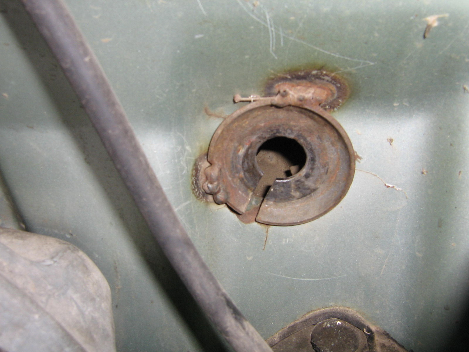 Ну и чтоб добить читателей! Прикол по сцеплению! Самое прикольное - это шайба с разрезом, приваренная на место где дырка в кузове, куда просовывается трос. Я так и не понял ее предназначение. Просто такое впечатление, что родную разворотили или зубилом или прямым попаданием снаряда. А потом приварили эту шацбу. Короче таких вот уродов нужно в лесу на деревьях вешать!