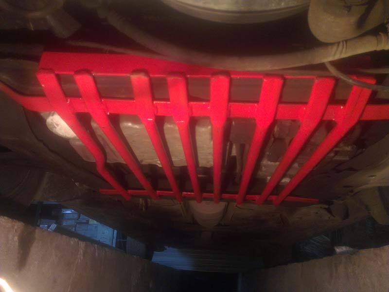 Буду краток.по приимуществам. Вес как вы уже заметели.Масло менять удобно без проблем рассчитано так что сливная как раз между двумя ребрами,среднее растояние между ними 55 мм,мои пальцы и ключ пролазит легко,проверял,под фильтр сделан специальный изгиб он тоже меняеться без проблем.Клиренс даже теоретически не может сожраться на пару сантиметров потому что толщина трубки 18 мм,а это уже меньше чем пару сантиметров,))а если мы посмотрим на конструкцию то увидим что впереди труба спрессована и имеет толщину 4 мм, а самое низкое место и есть перед подрамника,то получается что клиренс тот же. Если рассматривать продольные препятствия до 55 мм, то они теоретически не могут нести угрозу как препятствия размерами 30 см,а если и могут то и лист в 2 мм не спасет да и процент их попадания на дороге можно принять за 10% от общего числа,во вторых их будет принимать в первую очередь передняя часть которая скошена и с усиленным листом ,для того что б их скидывать,в 3-их,запас прочности и жесткости у трубчатого сечения диаметром 18 с толщиной стенки 2.5,как минимум в 50 раз больше чем у 2 мм листа.От гранитных камней? я пока завязал с карьерным транспортом и обогатительными фабриками но при случае испытаю.Ну и не маловажный фактор данной защиты то что ты видишь днище машины узлы и т.д.И тебе не нужно ехать хер знает куда и ждать что б сняли и посмотрели что б убедиться где и что течет не дай бог.По креплению,все очень просто.Задняя часть просто вставляеться в технологические отверстия подрамника 850,а передняя прикручиваеться на 2 болта в технологические отверстия подрамника 850,они стандартны и идут с завода на всех машинах.