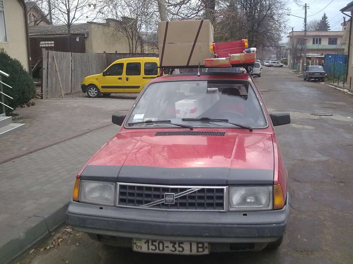 Поки колесо бортують -- в магазин. По дорозі на стоянці зустрів дизельну Вольву 340 невизначеного кольору, матову. За звичкою привітався. У відповідь -- здивоване обличчя. Блін, я ж пішки йду ... :-D