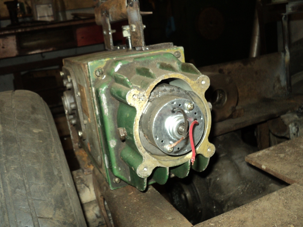 Исполнительный механизм комплектовался приводным моторчиком мощностью в 19 Вт/220 В, разобрав часть механизма обнаружил небольшой шестеренчатый редуктор на приводном валу что еще больше обрадовало. И в поисках нужного моторчика на 12В у отца нашелся поломанный китайский компрессор (разлетелся поршень) с него срезалось все лишнее, а на его вал очень хорошо оделась и заштопорилась родным винтиком шестерня со старого моторчика исполнительного механизма, выточили центрирующую втулку и установил мотор мощность которого 160 Вт, установив на рычаг исполнительного механизма полутора метровую трубу и повесив на край рычага 90 кг, выяснилось что моторчик напряжно но упорно поднимает груз, по средине рычага 70 кг поднимались практически без напряга.