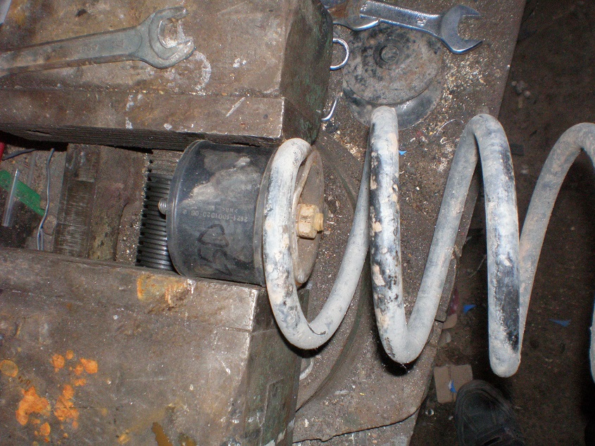 В далёком 2011 году, после ремонта кузова и мотора, оказалось что нос машины стоит выше зада, ну а поскольку я не поклонник лоу и прочих занижений, было решено поднять кузов, тем боле это универсал и при нашей(очень редко) загрузке он может потерять глушитель об закатанного в асфальт "полицейского". Нашёл пружины на 1,5 см выше родных, но а поскольку они б/у-это не сильно спасло положение. Тогда наткнулся в сетях на совет с нивовскими подушками двигателя, под задние пружины. Переделка оказалась лёгкой и работоспособной.Зад был приподнят.