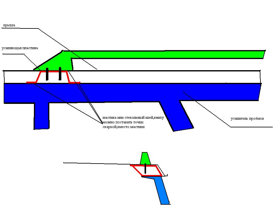 место - усилитель по периметру , он на расстоянии стоит от крыши. Почему там? когда релинги приехали, то на них кое где были болты на 5 длиной около 4см . Расстояние от крыши до усилителя то же примерно 3-4.