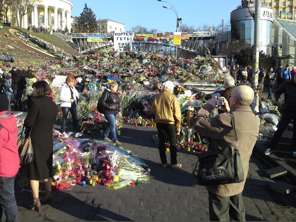Я не писал до сих пор, потому что не мог. Я пишу сейчас потому, что не могу не писать. Это тема о памяти и очень прошу, не устраивать дискуссии. Споры не всегда приводят к истине. Среди участников форума я , пожалуй , самый старший и поэтому беру на себя право посоветовать всем, кто читает : посетите Майдан. Очень прошу, парни, взываю ко всем. Убеждаю , умоляю - посетите Майдан! Возьмите отпуск на день, займите деньги на проезд, отложите все дела - это очень важно для вас. Если вы не потрогаете глазами и не походите по закопченным центральным улицам Киева , не прикоснетесь к булыжной мостовой, которая хранит еще горячие следы боя , не постоите под простреленными деревьями, не почувствуете ту трагедию, которая еще не затерта временем... Вы будете жалеть об этом всю жизнь. Такое можно увидеть только раз в жизни. Это говорю вам я , человек проживший все годы в Киеве. Уже через неделю Майдан разберут. Такое количество цветов невозможно себе представить. У мня есть много фотографий, но я бы снимал и снимал. Приедь на Майдан и много вопросов отпадет , многое станет ясно и расскажете своим детям и внукам с первых уст, то что увидел, что понял...