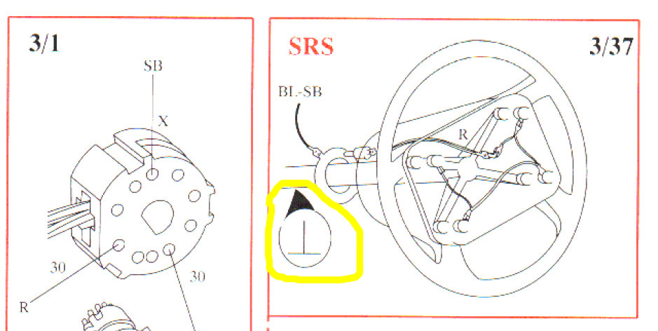 Є невеличка проблемка. Пропав звуковий сигнал. Визначив, що не має масси на рулі. Див. фото. Масса повинна прийти з штоку рульової колонки. Там точно десь має бути провід який садить колонку на масу. Ніби й не дурний, вже й руль знімав, але цього проводу так й не знайшов. Підскажіь куди дивитись, де він никається?