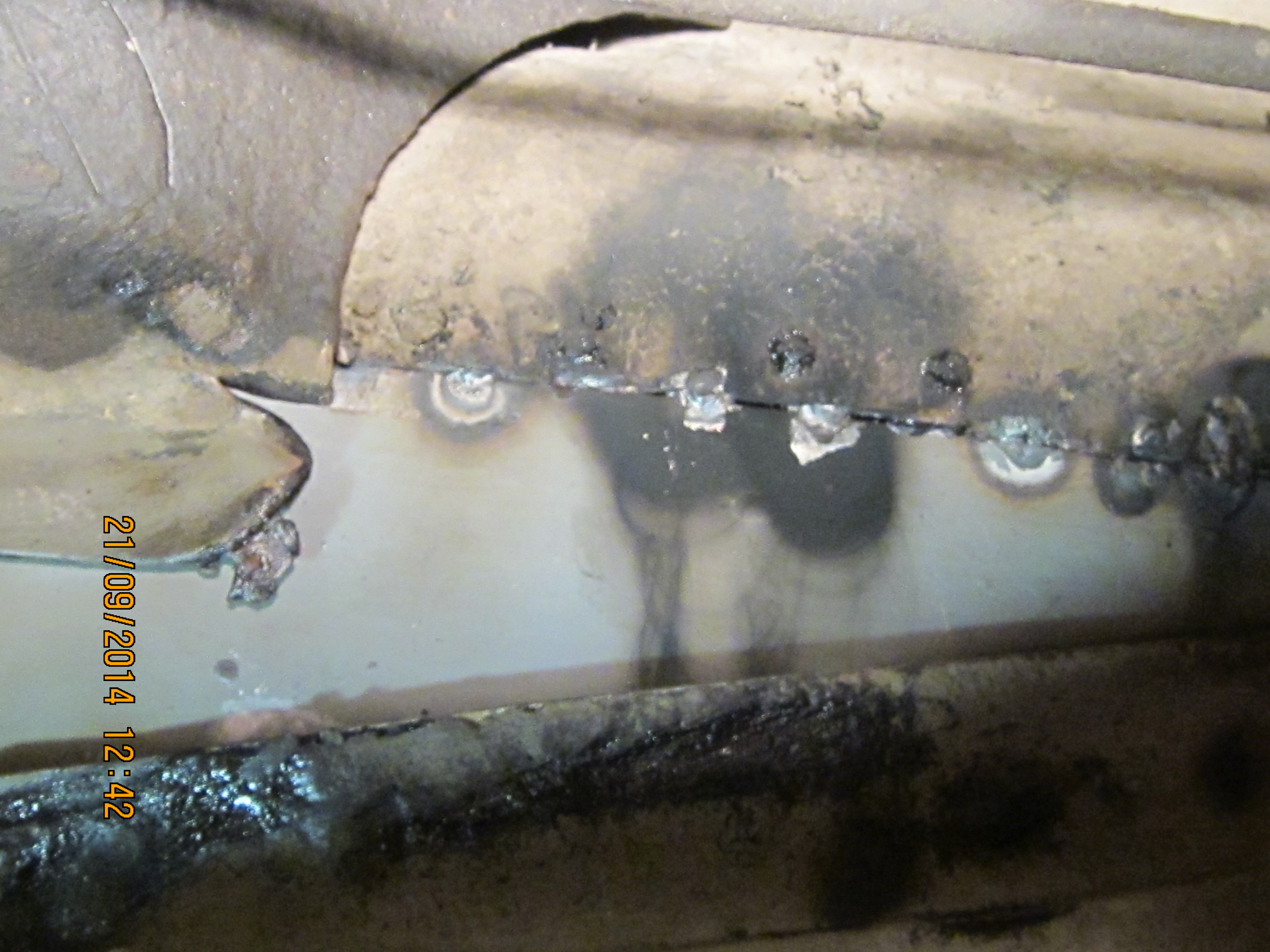 І ще фото розрізаного порогу в місці де мав би бути кронштейн для домкрата біля заднього лівого колеса. Різати довелось тому, що там була вм'ятина і вирівняти її ззовні не вдалось. Всередині, як виявилось теж не все супер :sad: