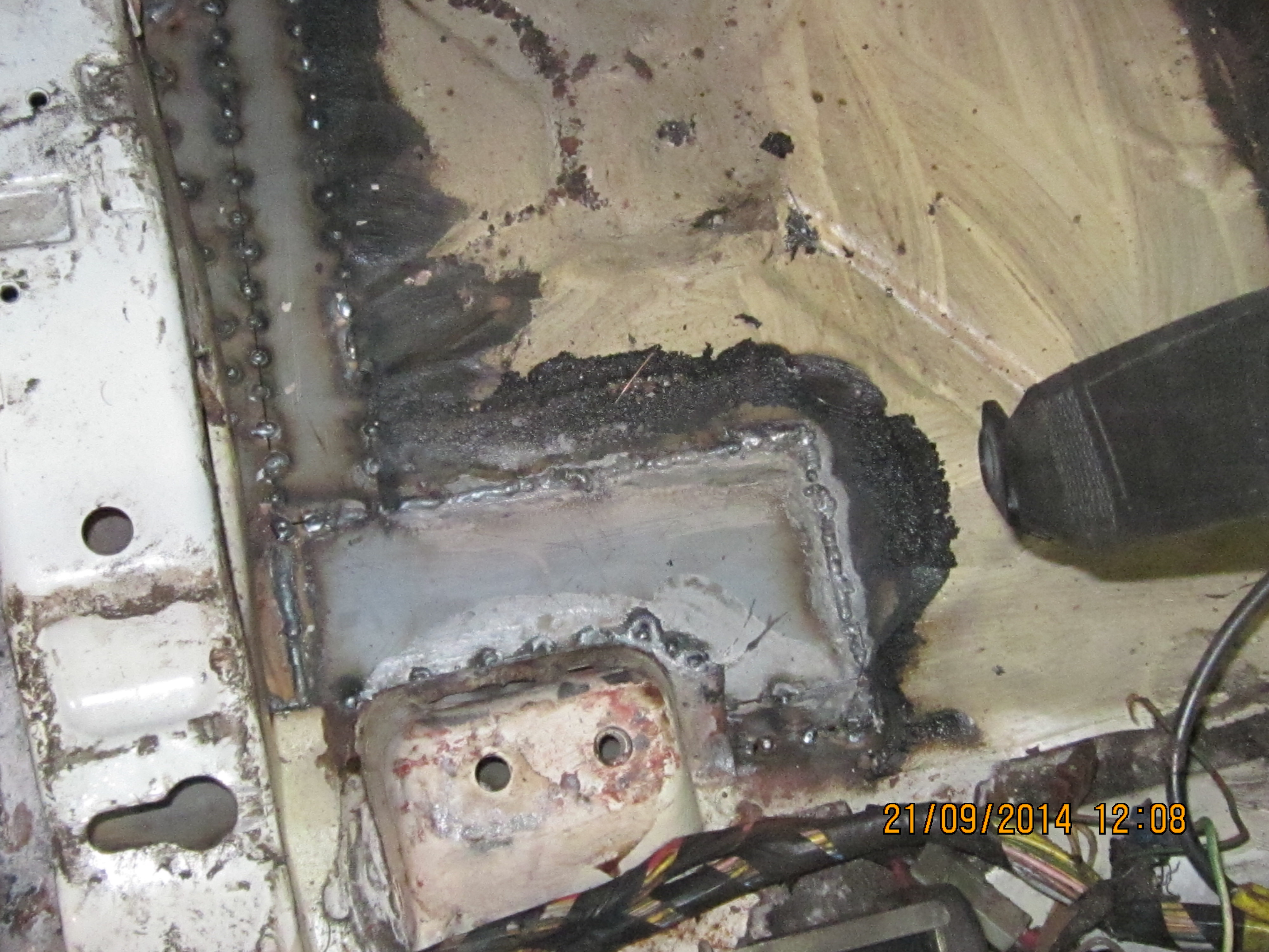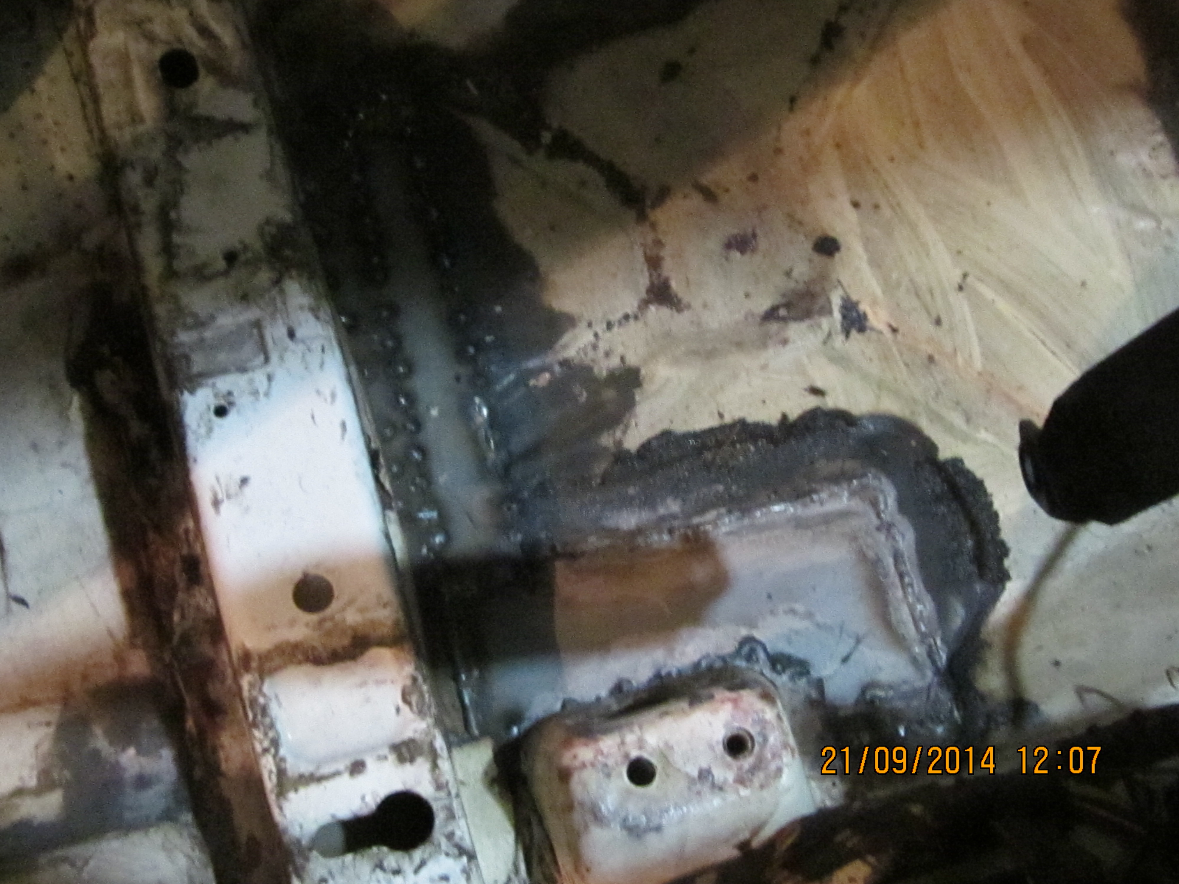 І ще фото розрізаного порогу в місці де мав би бути кронштейн для домкрата біля заднього лівого колеса. Різати довелось тому, що там була вм'ятина і вирівняти її ззовні не вдалось. Всередині, як виявилось теж не все супер :sad: