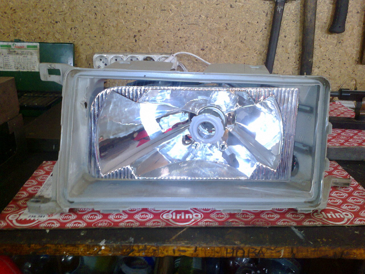 На каком-то не украинском форуме услышал идею фар от пассата б3. У соседа был такой, осталась старая фара. Разрезал ,потринеровался. Да вроди бы ничего. Успел взять по 250 гр депо. Конечно проще было бу найти родные, но нету! Зато на фольсовские эл коректор можно поставить.