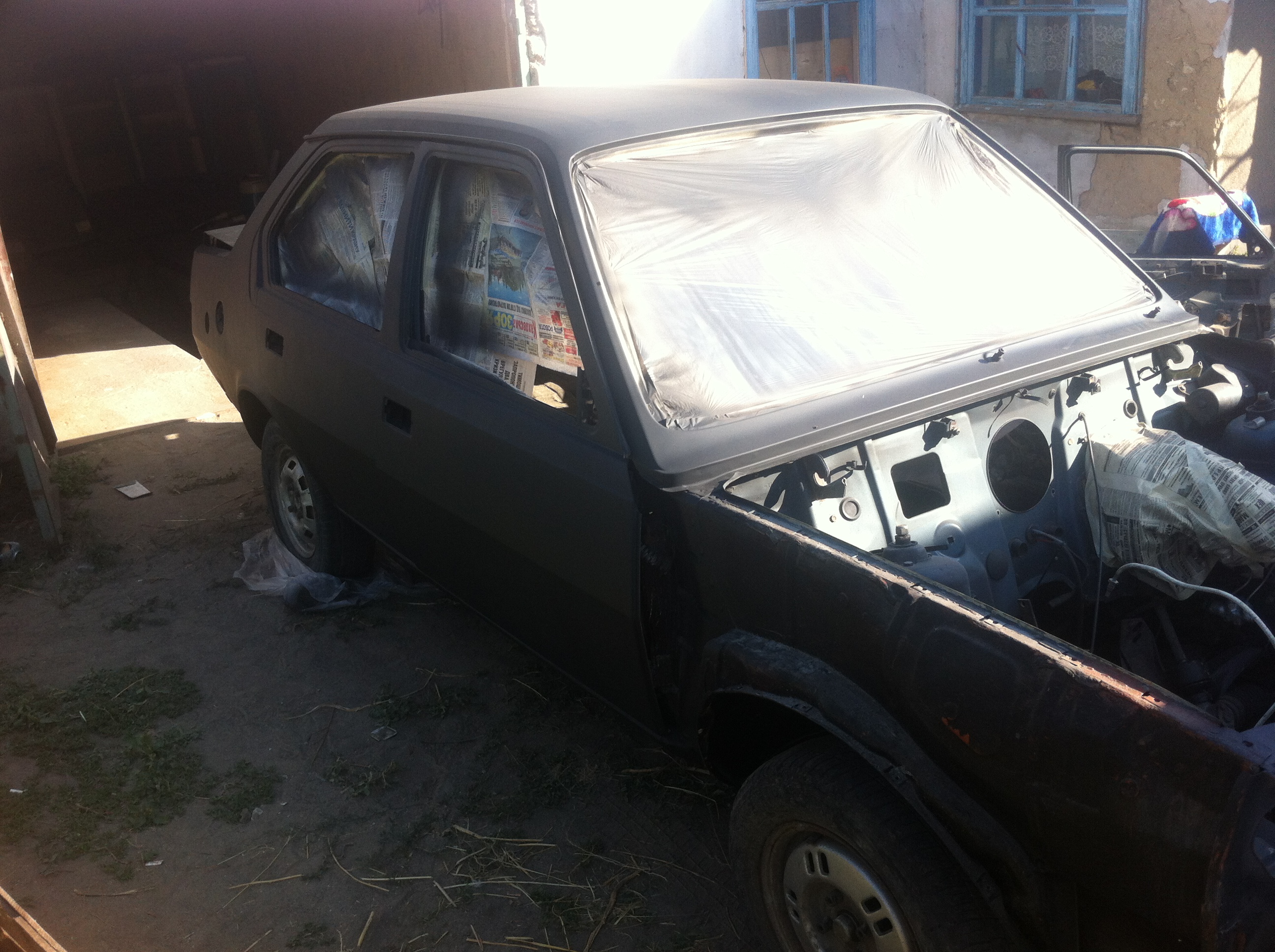 Двигатель 1,4 отвёз на капиталку, когда позвонили что его сделали, думаю буду собирать, но тут посмотрел по кузову то там царапины то вмятины, решил что нужно её красить, и отогнал на подготовку. :D Пару фоток уже погрунтованной.