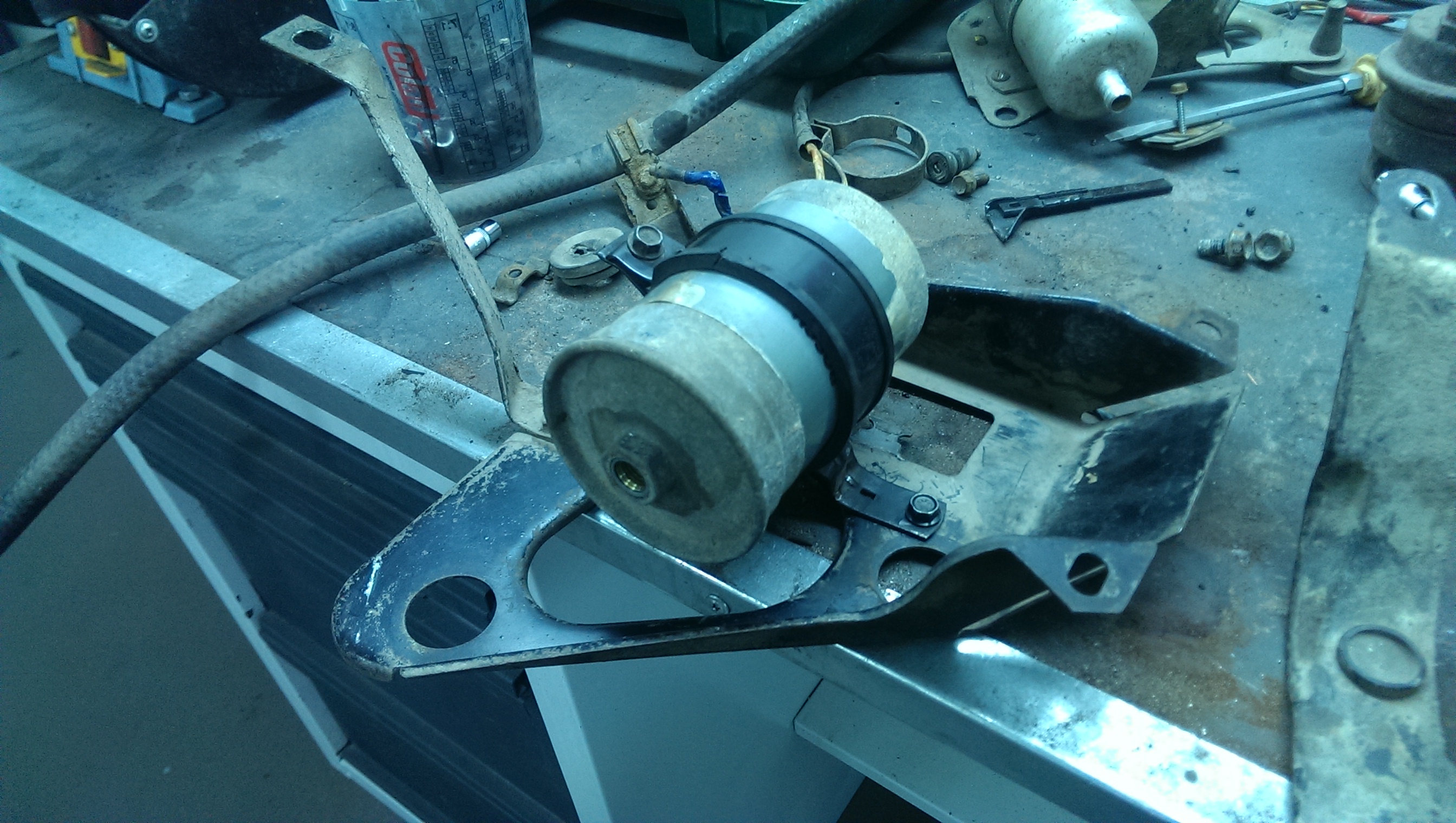 Еще решил перенести топливный фильтр из под капота - меня он чего то всегда раздражал, (справа тот который) под днище - на место родного бензонасоса, вроде получилось не плохо