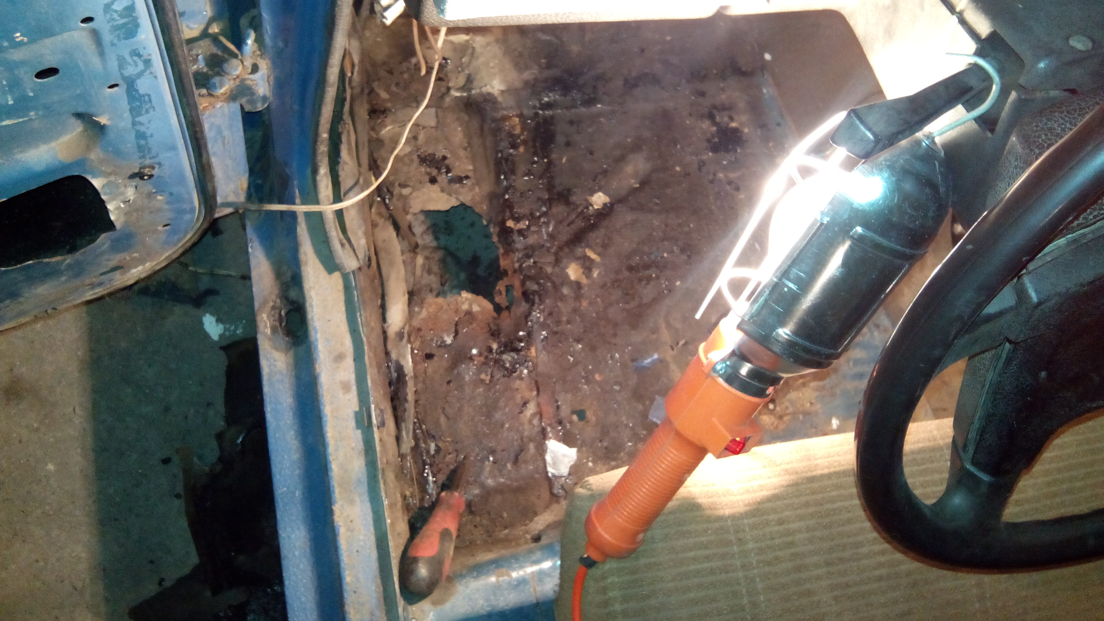 на месте крепления капота. когда снял его увидел что с одной стороны он был на одном болте... Даже не знаю как там привариться.... :(