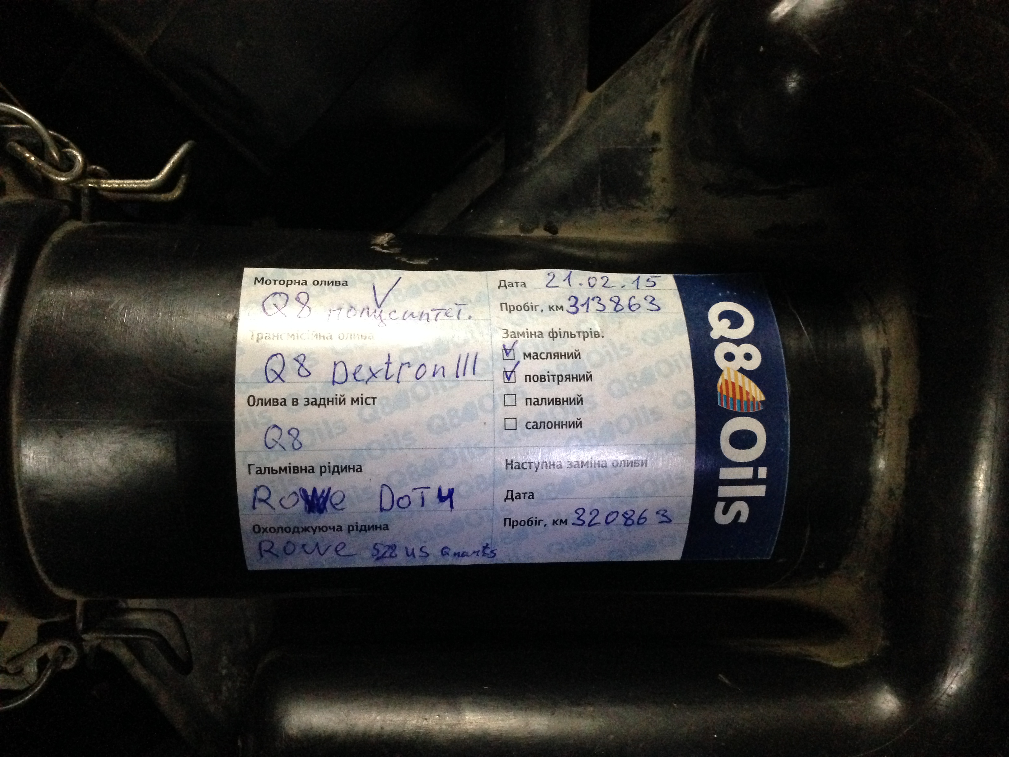 скоро-скоро будет 7 тыс спустя того момента, когда она поехала. Масло как и 7 тыс назад - Q8 полусинтетика.