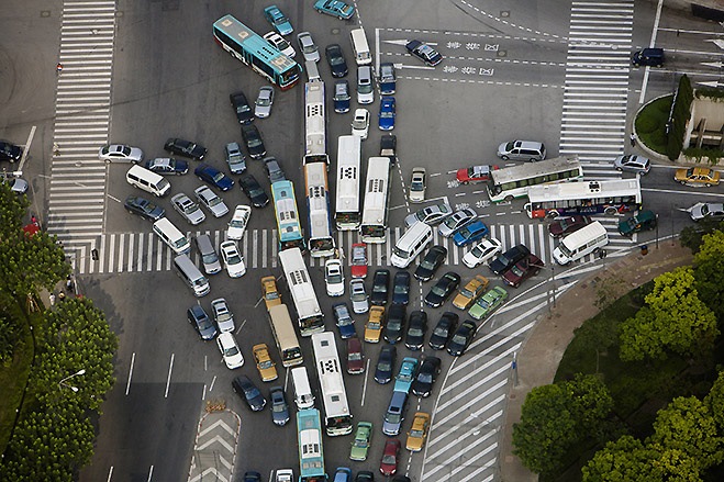 Итак, суть эксперимента состояла вот в чем. Проектировщики взяли воронку и килограмм риса. Сначала они просто засыпали в воронку всю крупу разом и посчитали, что на ее высыпание ушло 40 секунд. Затем рис стали сыпать тонкой струйкой, равной размеру отверстия. И оказалось, что этот процесс занял всего 27 секунд! Нетрудно догадаться, что воронка служила моделью «бутылочного горлышка» на трассе. Когда к месту сужения подъезжает сразу много машин, они начинают активно взаимодействовать между собой, пытаться протиснуться вперед, выяснить, кто имеет право приоритетного проезда. И на такое взаимодействие и выяснение уходит гораздо больше времени даже у риса, у которого в принципе отсутствуют амбиции и, кроме силы трения, преодолевать ему больше нечего. В итоге светофоры, «размазывающие» поток автомобилей по трассе, сокращают количество претендентов на «бутылочное горлышко», а значит, не только убыстряют поток, но и перенаправляют народный гнев с соседа по пробке на абстрактные городские службы, которым вообще-то не привыкать.