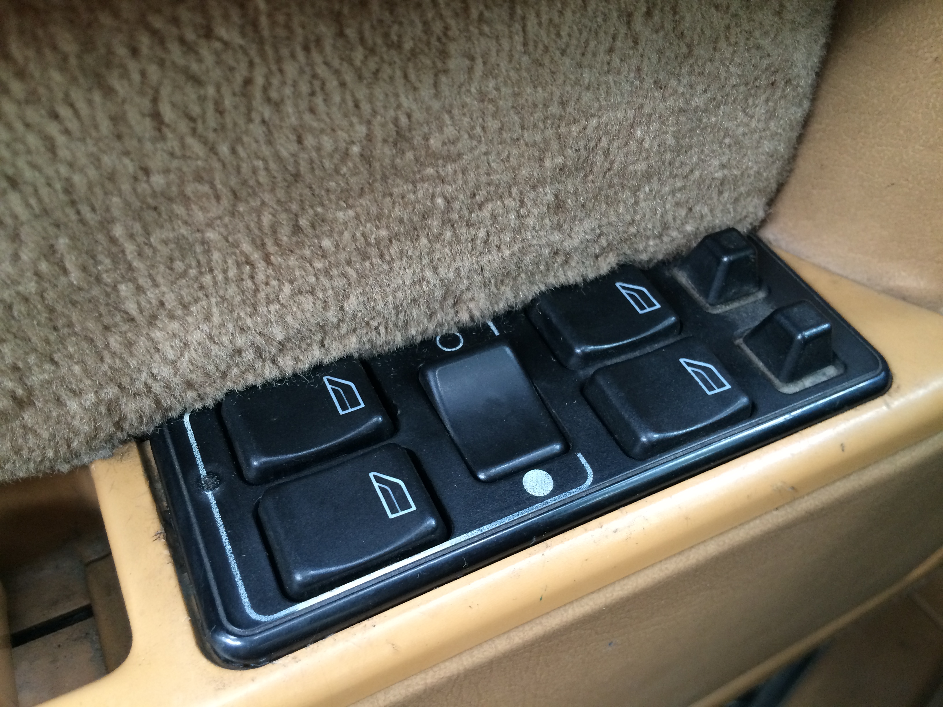 На кнопках задних окон, специальные тактильные полосочки, что бы не спутать с передними.