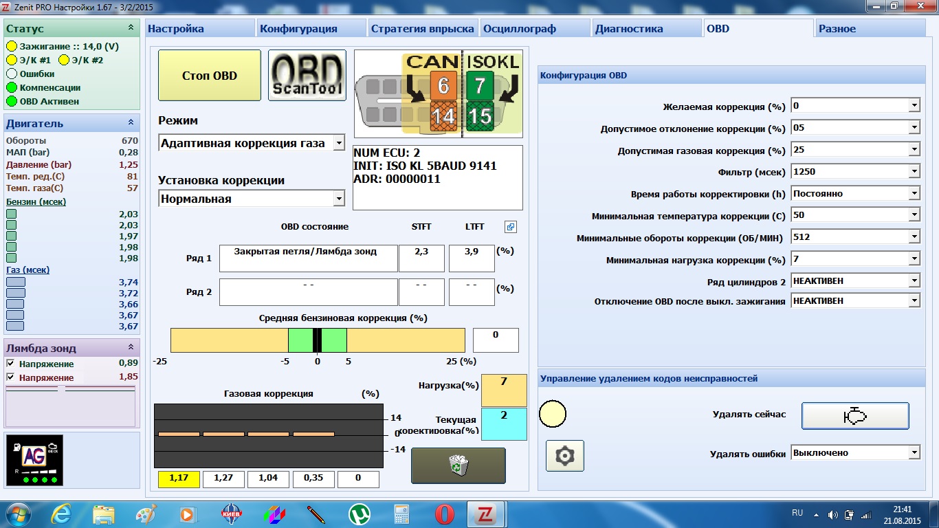 Продолжу, баллон 68л 680/240, редуктор Aldesa 165 кВт, форсунки HANA grееn, мозги ZENIT PRO ОВD, установка и настройка самостоятельные. Расход предварительный пока 15л в городе в левом ряду без отвалов. Картина такая.