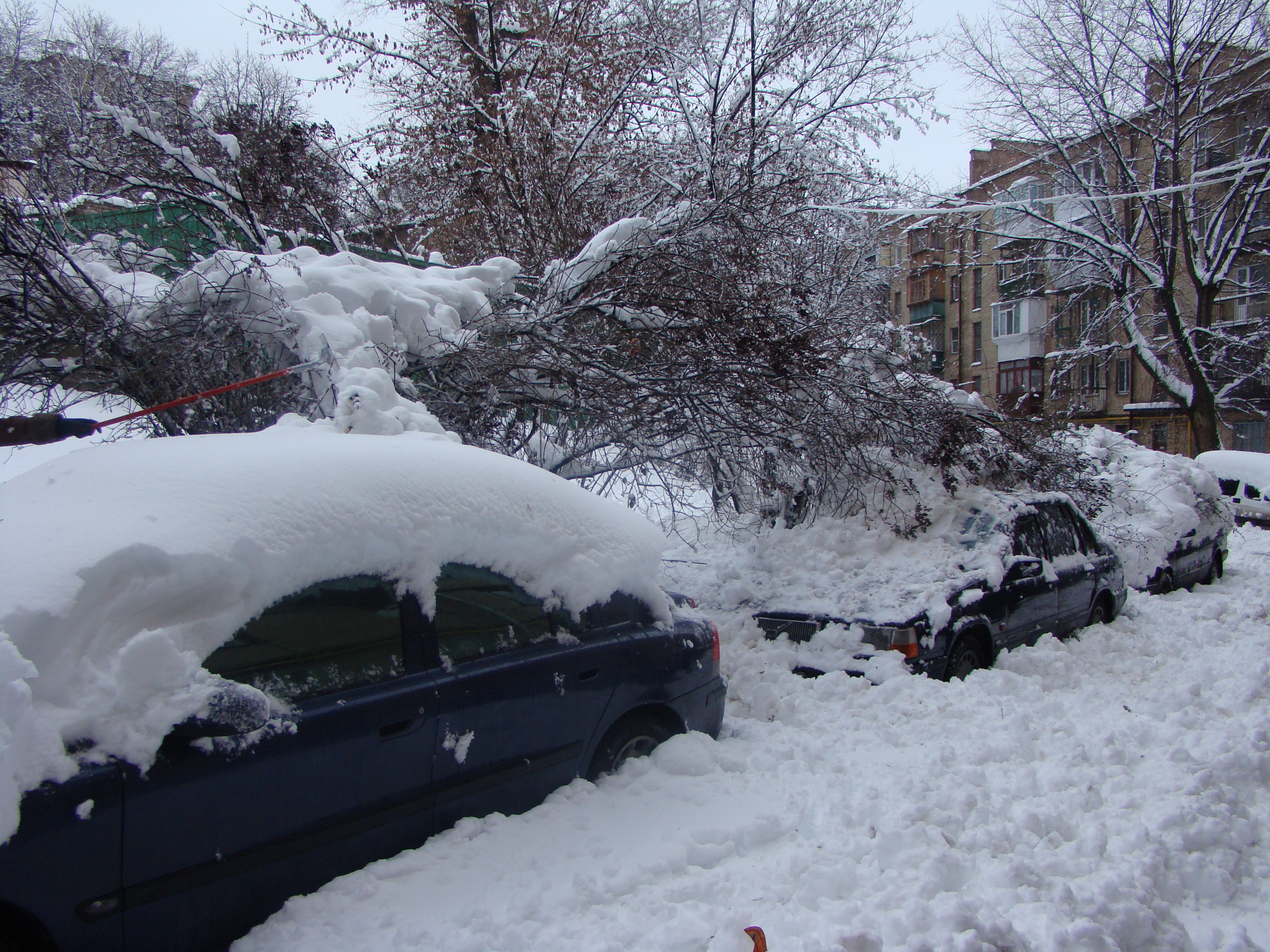 Вот тут рядом висит тема где народ обсуждает кому как удалось завестись. Они счастливые люди - их машины могут куда-то выехать ))) Моя Вольво успешно стоит в гараже. Заводится отлично, только никуда выехать не может 8-) Потому как в Одессе выпало рекордное кол-во снега. Многие, как и я, практически находятся в "снежном плену" - машины не могут выехать, а если могут выехать, то некуда ехать: многие дороги попросту занесены так, что даже пешком становится трудно пройти. Чтоб добраться на работу приходилось проходить по 5-6 километров по снегу - и это только чтоб попасть куда-то, где появляется возможность остановить втридорога такси. Общественный транспорт не ходит в принципе. В моем р-не маршрутки просто стоят брошенные вдоль дороги. На всех паркингах стоят припаркованные в 2 ряда автомобили: люди стояли часами в пробках в надежде выехать и доехать домой, а потом (к глубокой ночи ближе) просто бросали машины где попало и шли домой пешком.