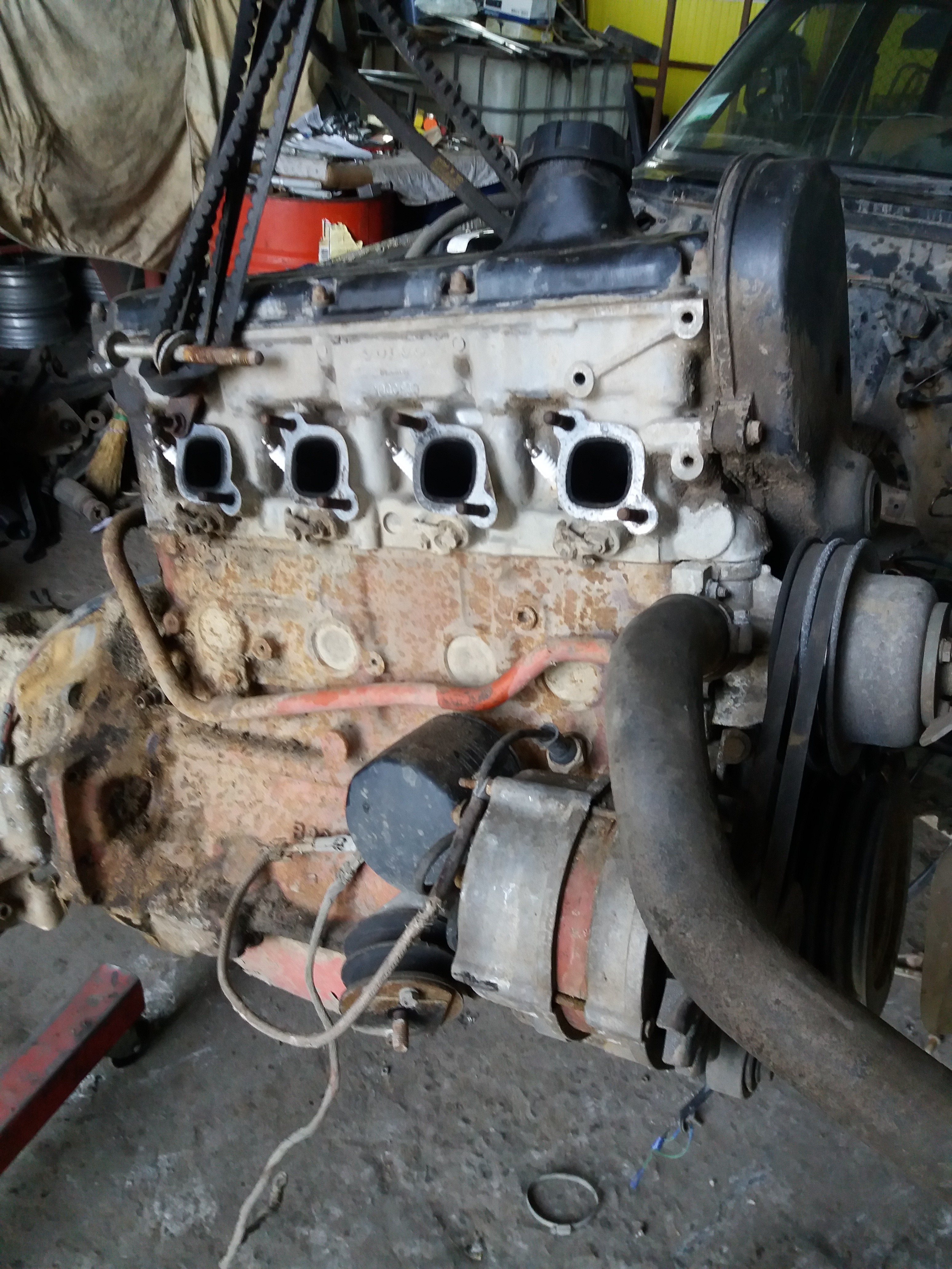 Ну вот сегодня снял Моторчик и КПП. Вот так он выглядит сразу после снятия. Весь в грязи и пыли. Зато потёков масла почти нет. Ну разве, что с задней части крышки клапанов.