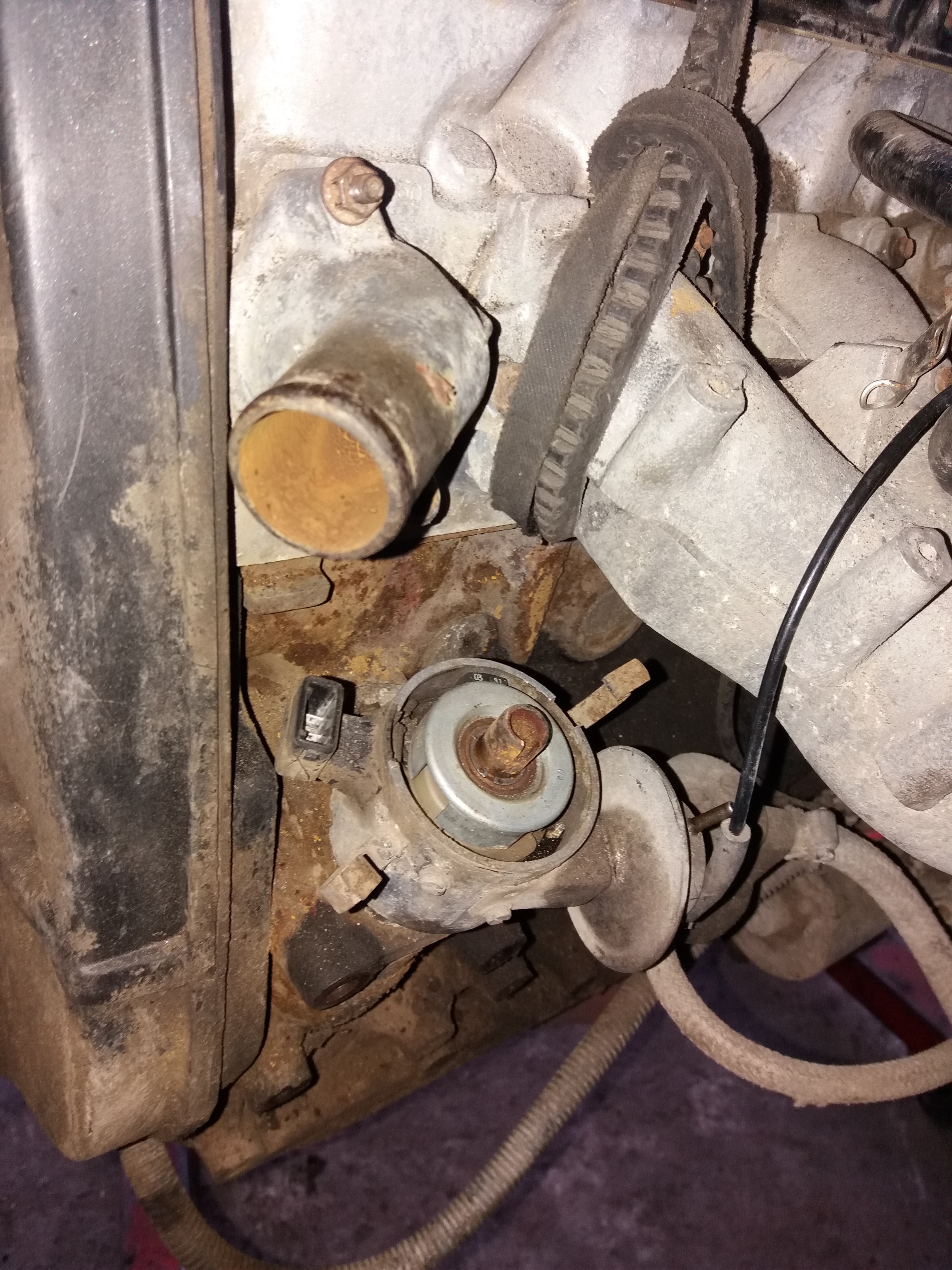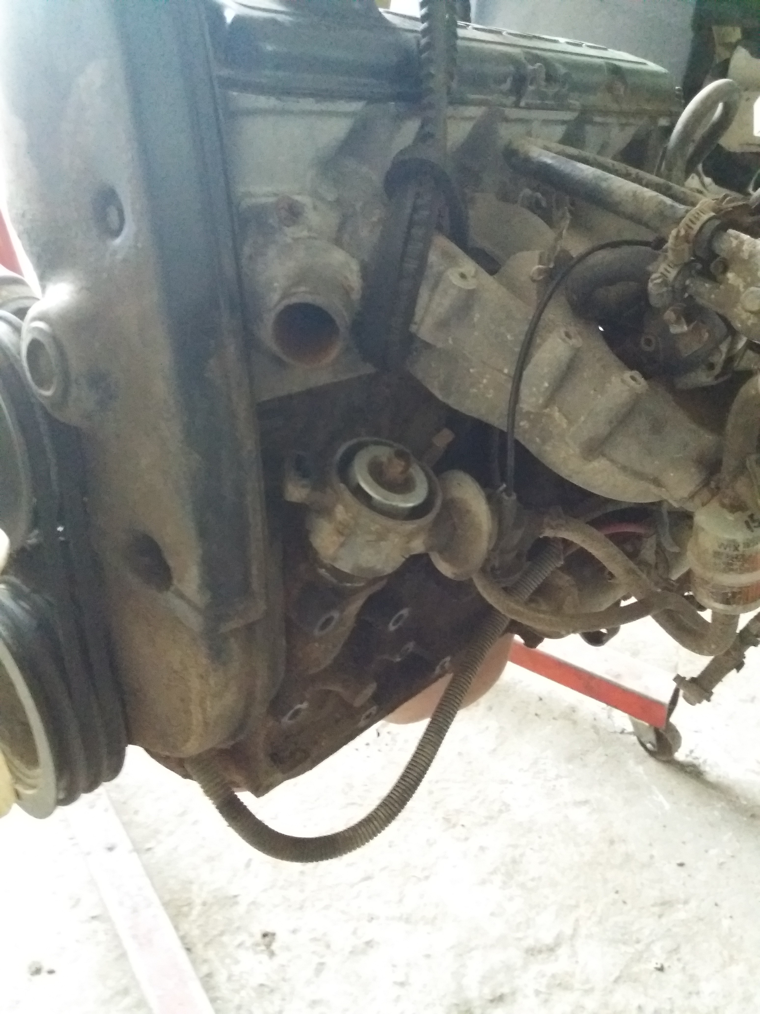 Ну вот сегодня снял Моторчик и КПП. Вот так он выглядит сразу после снятия. Весь в грязи и пыли. Зато потёков масла почти нет. Ну разве, что с задней части крышки клапанов.