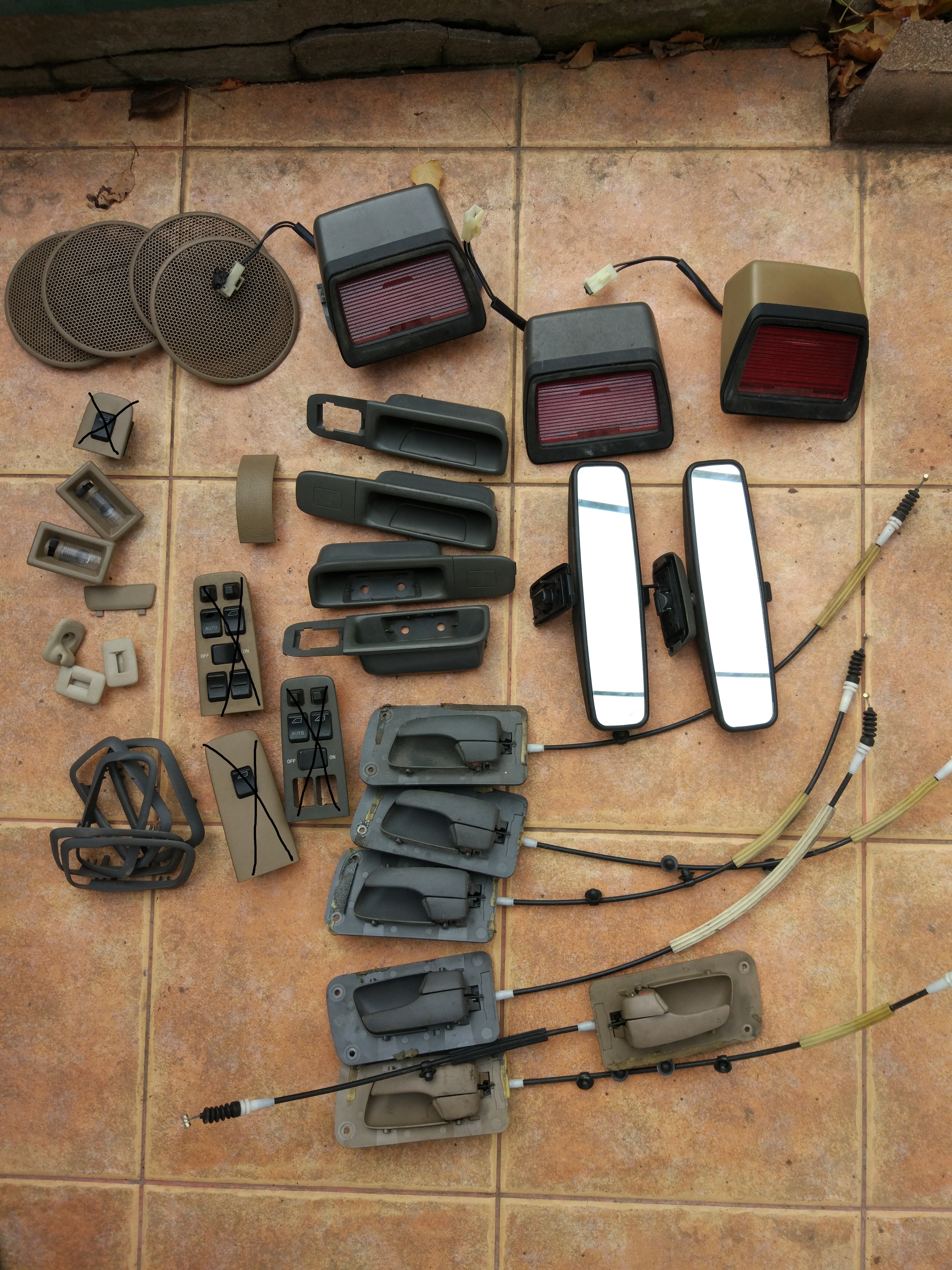 Кое что по электронике ( переключатели поворотников и дворников, мозги двигателя, АКПП, абс. Динамики в двери). Ручки дверей наружные, щиток приборов, суппорта передние, генератор, стартер, компрессор кондиционера.