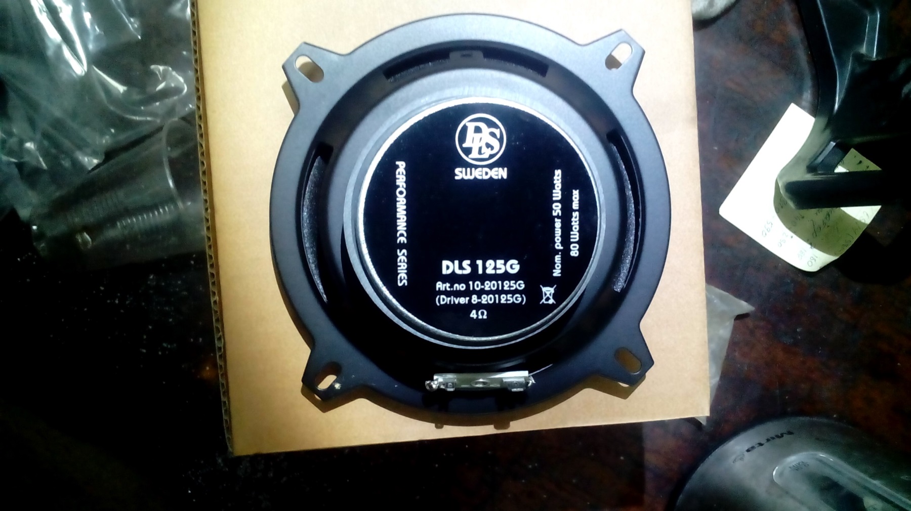 И наконец дошли руки до задних динамиков. Учитывая нынешние тенденции торговли - кто красивей написал цифры, тот больше продал - решил выбирать динамики по звучанию. В итоге получились двухполосные, а не 3-х, как хотелось, и диапазон частот вроде 60-18000 Гц. Но звучали они гораздо приятней чем 3-х полосные 30-22000 Гц. 60 Гц конечно далеко не 20, но звук в машине стал гораздо интересней. Теперь громкости достаточно.