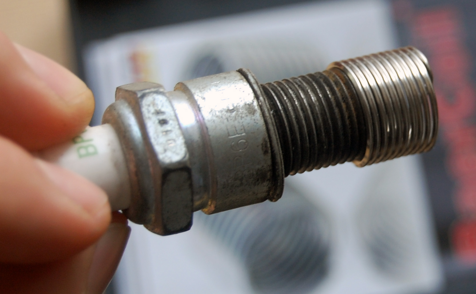 ЗЫ: свечу всегда накручивать от руки, потом только ключами/головками затягивать. Это ещё повезло что стравливало таким образом, а могло и капот прострелить ))