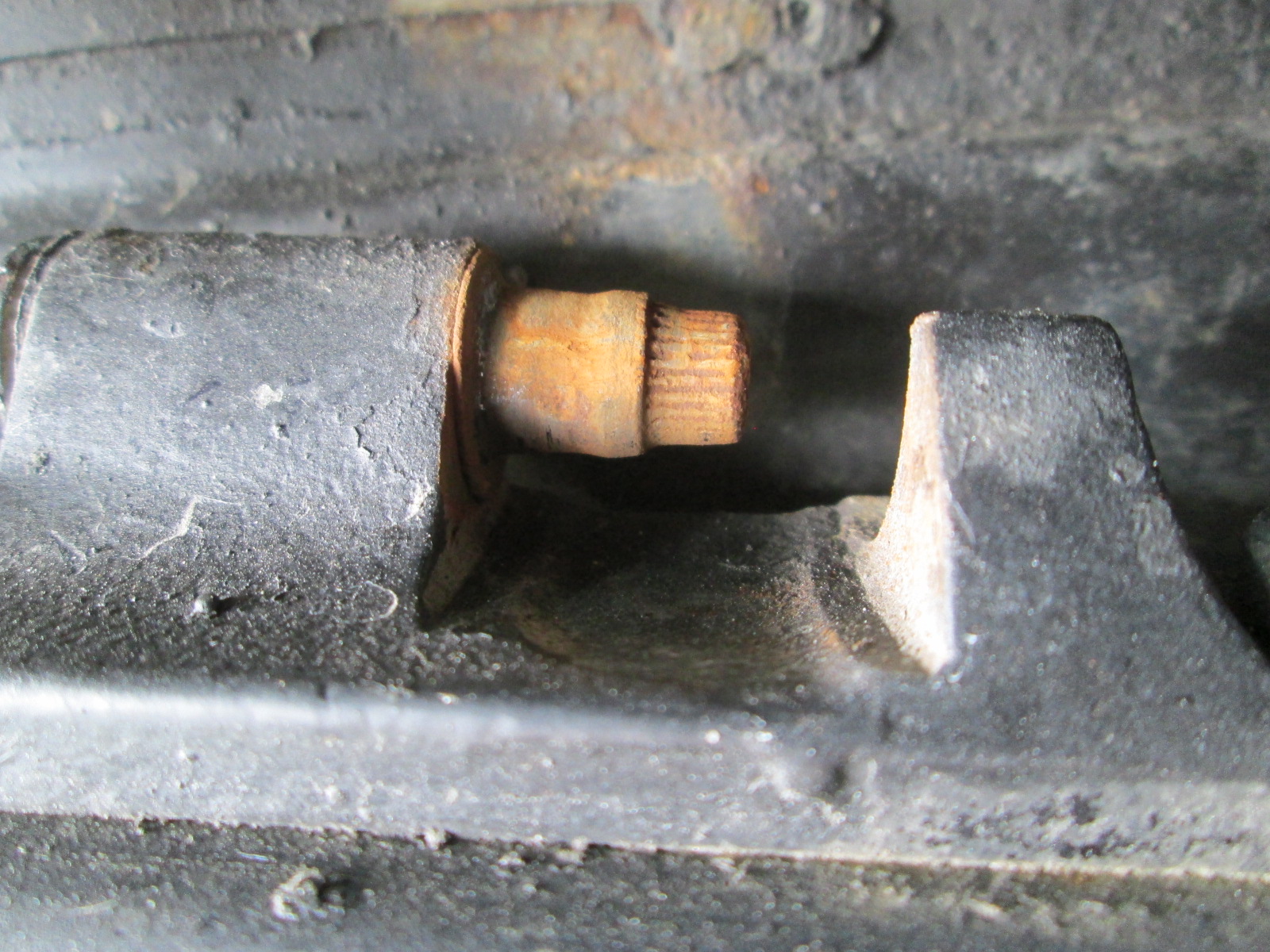 Лопнувший кронштейн. Видно трещину и самодельную вставку.