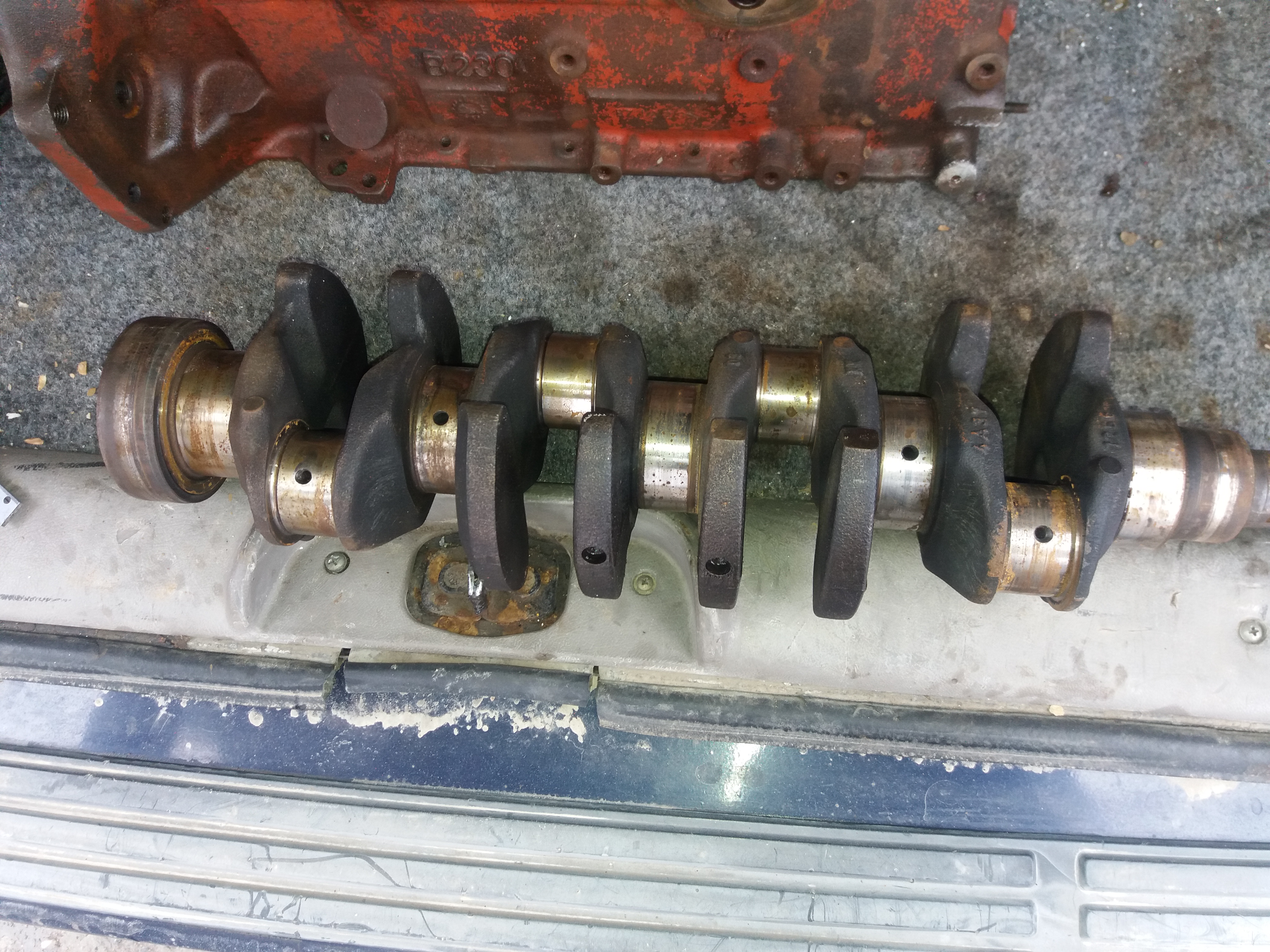 Хочу вынести на обсуждение вот такой вопрос. Сегодня ко мне приехал один молодой человек и показал коленвал. Мотор стоит на катере. Маркировка по мотору В230. Вылито на блоке и вверху под самой головой вылита буква К. Но самое интересное - это коленвал. Я не видел таких никогда. На таких моторах шайбы разбега вала стоят на 3 шейке , а тут на 5. И самое главное он имеет размер коренных шеек как на В23, а шатунных как на В230. Шатуны и поршня как на В230. Я так думаю , что такие моторы делали только на катера. Или что то не так?