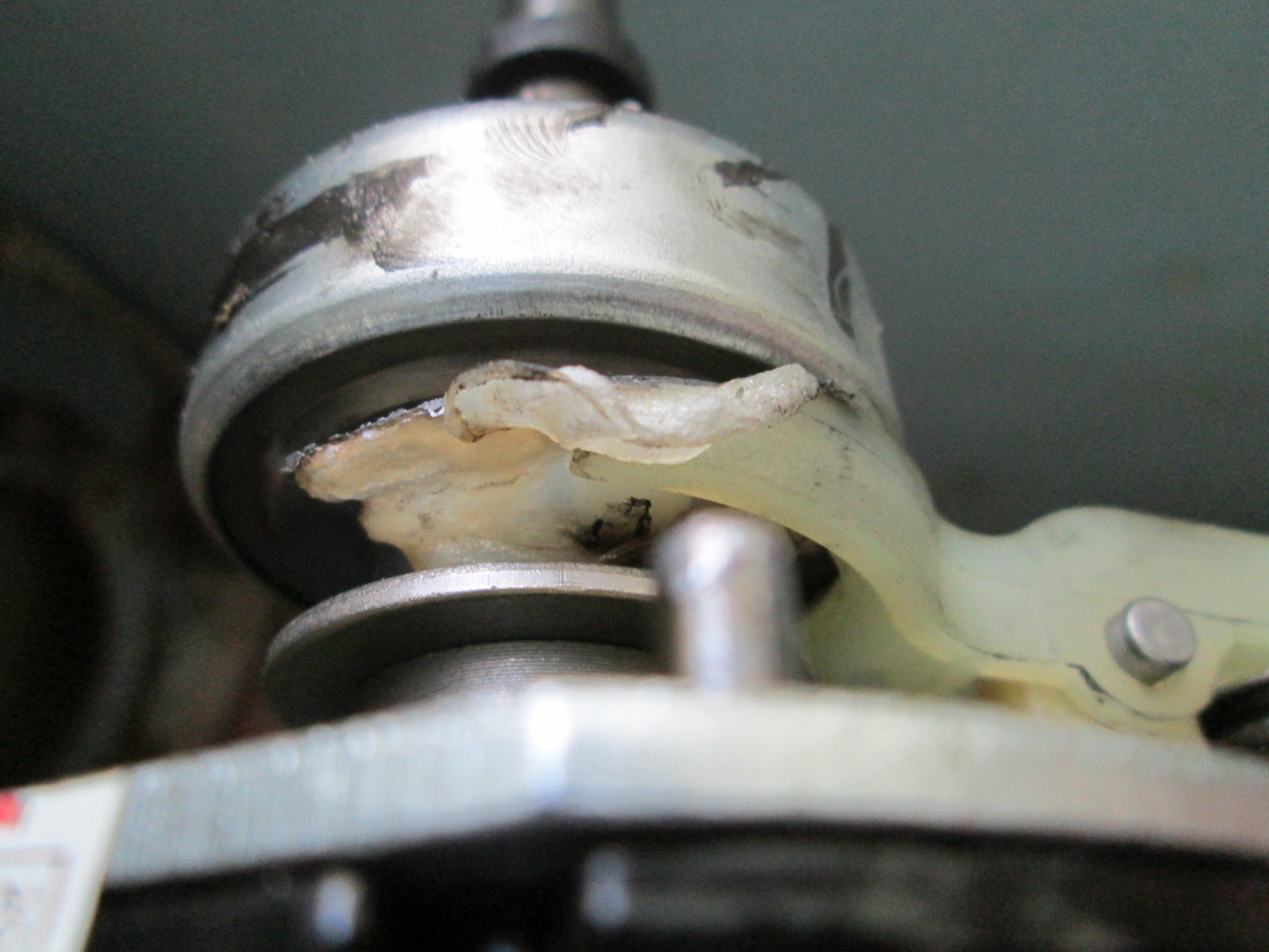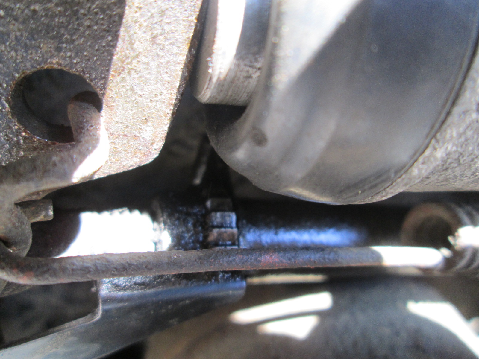 Лопнувший кронштейн. Видно трещину и самодельную вставку.