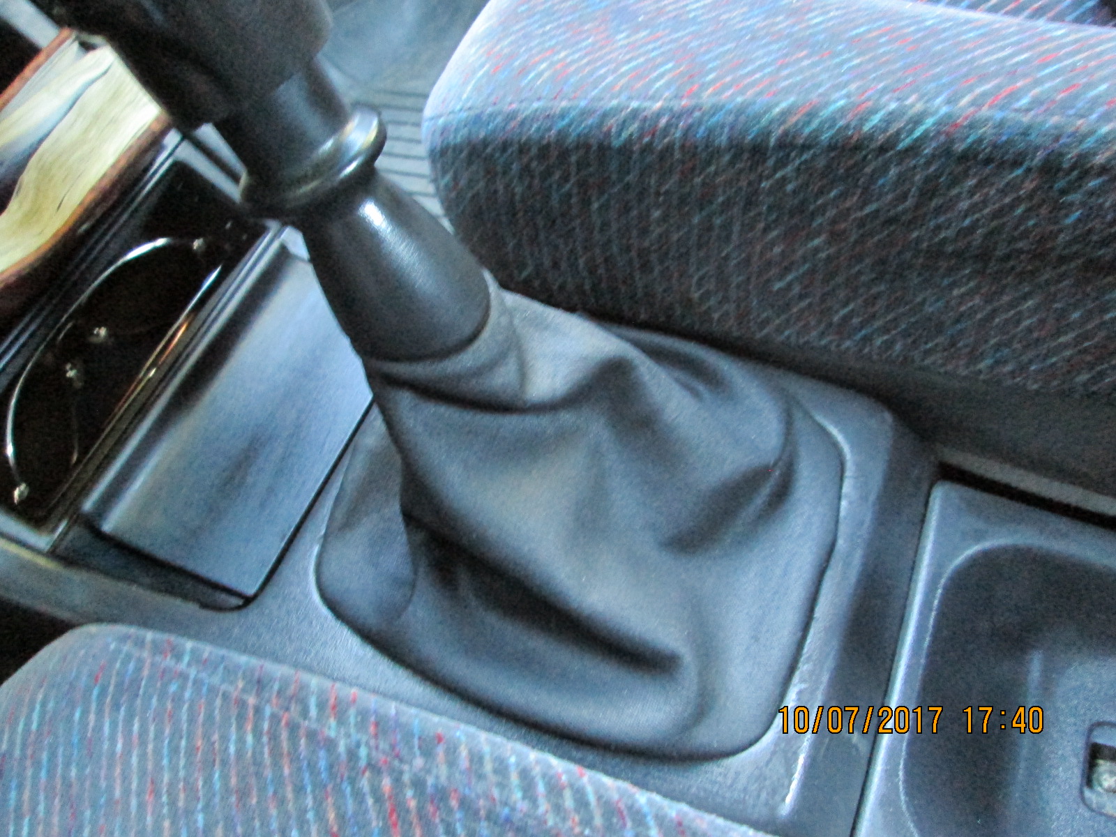 Поменял чехол на ручке КПП. Старый из кожи молодого дермантина поиздырявился немного. Пошили из какой-то автомобильной ткани.